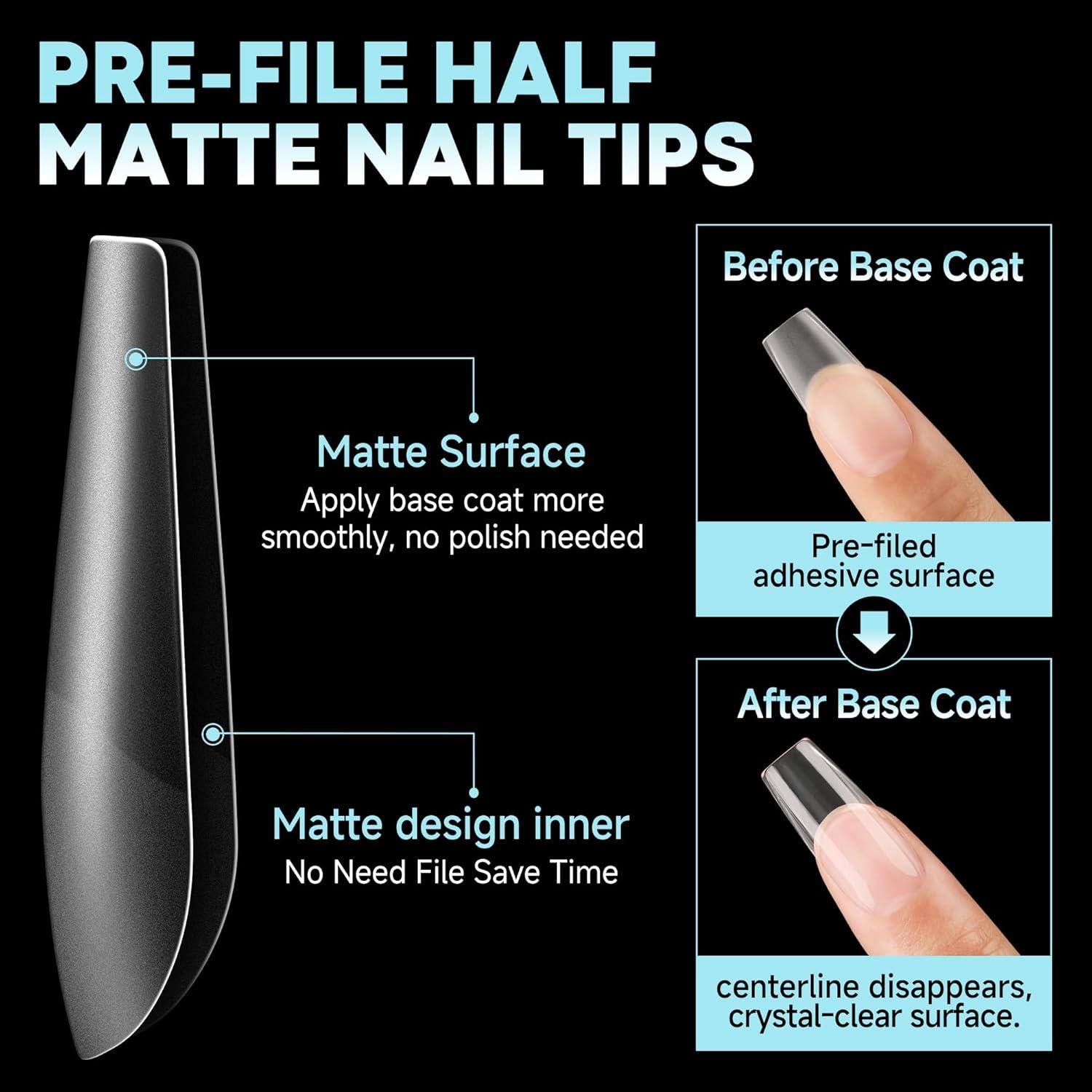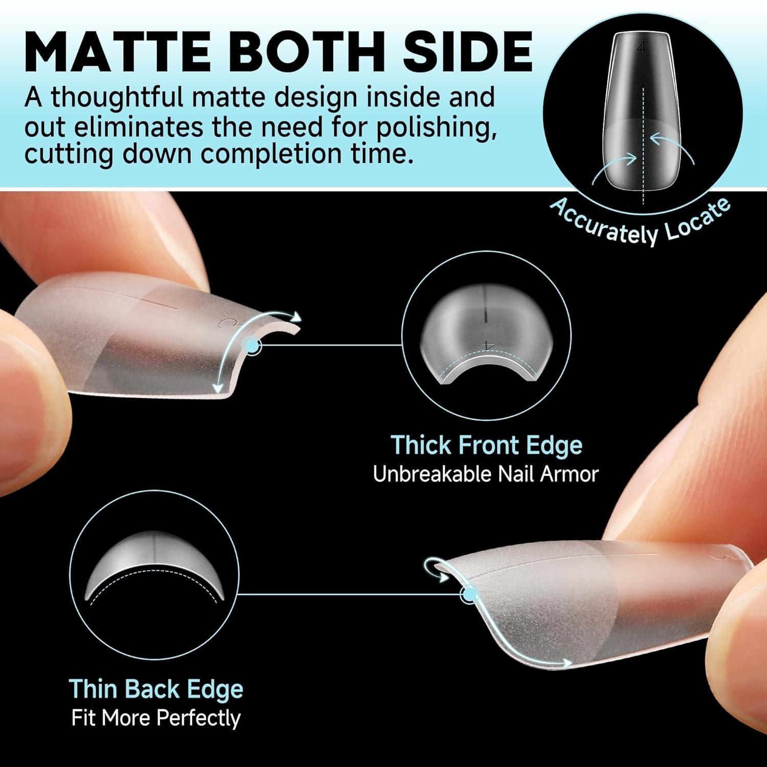 UNA GELLA Coffin Nails Tips Pre-buff Soft Nail Tips Matte Coffin False Nails Tips Acrylic Full Cover 312Pcs 15Sizes Gelly Press On Nails Fake Nail Tips for Nail Extension DIY Salon