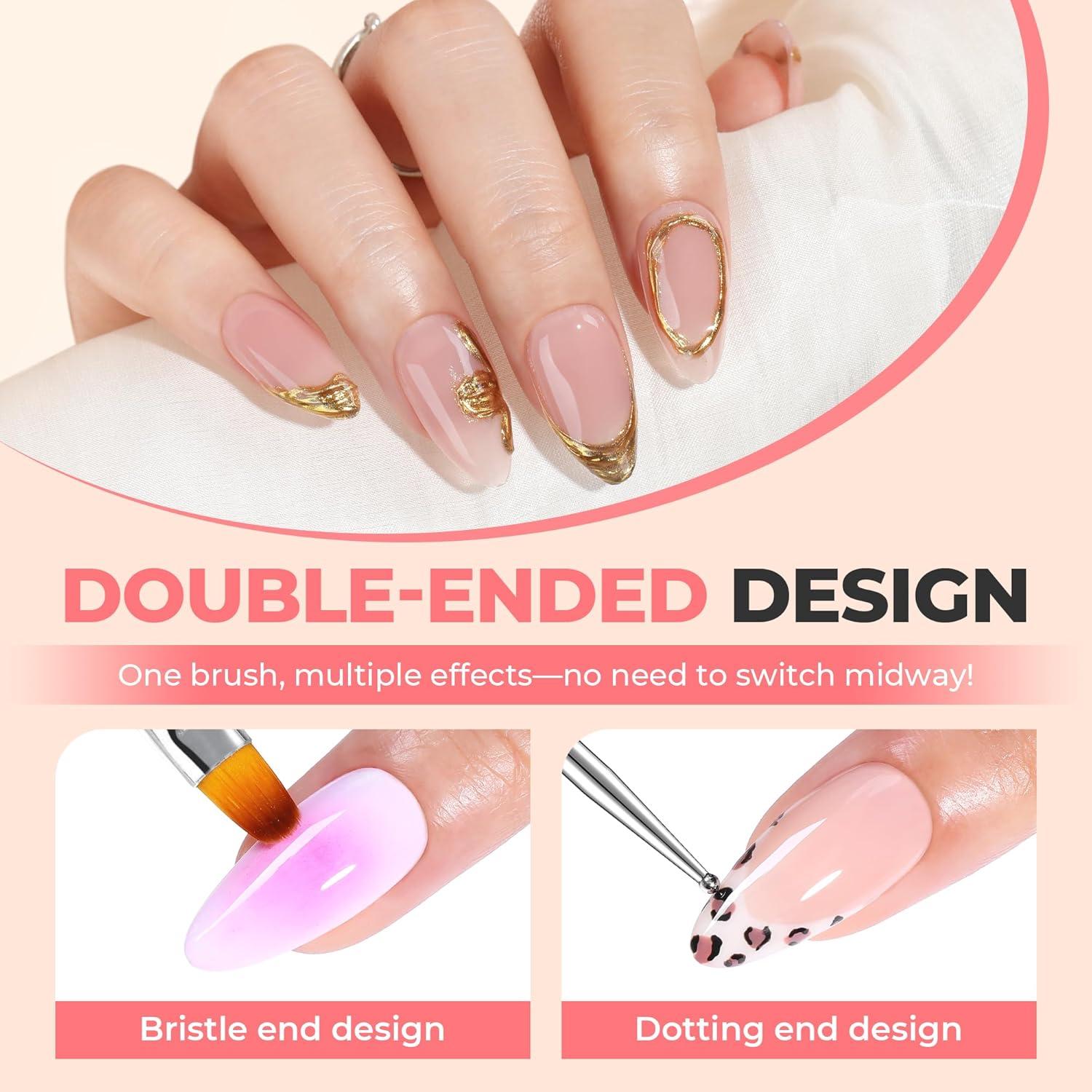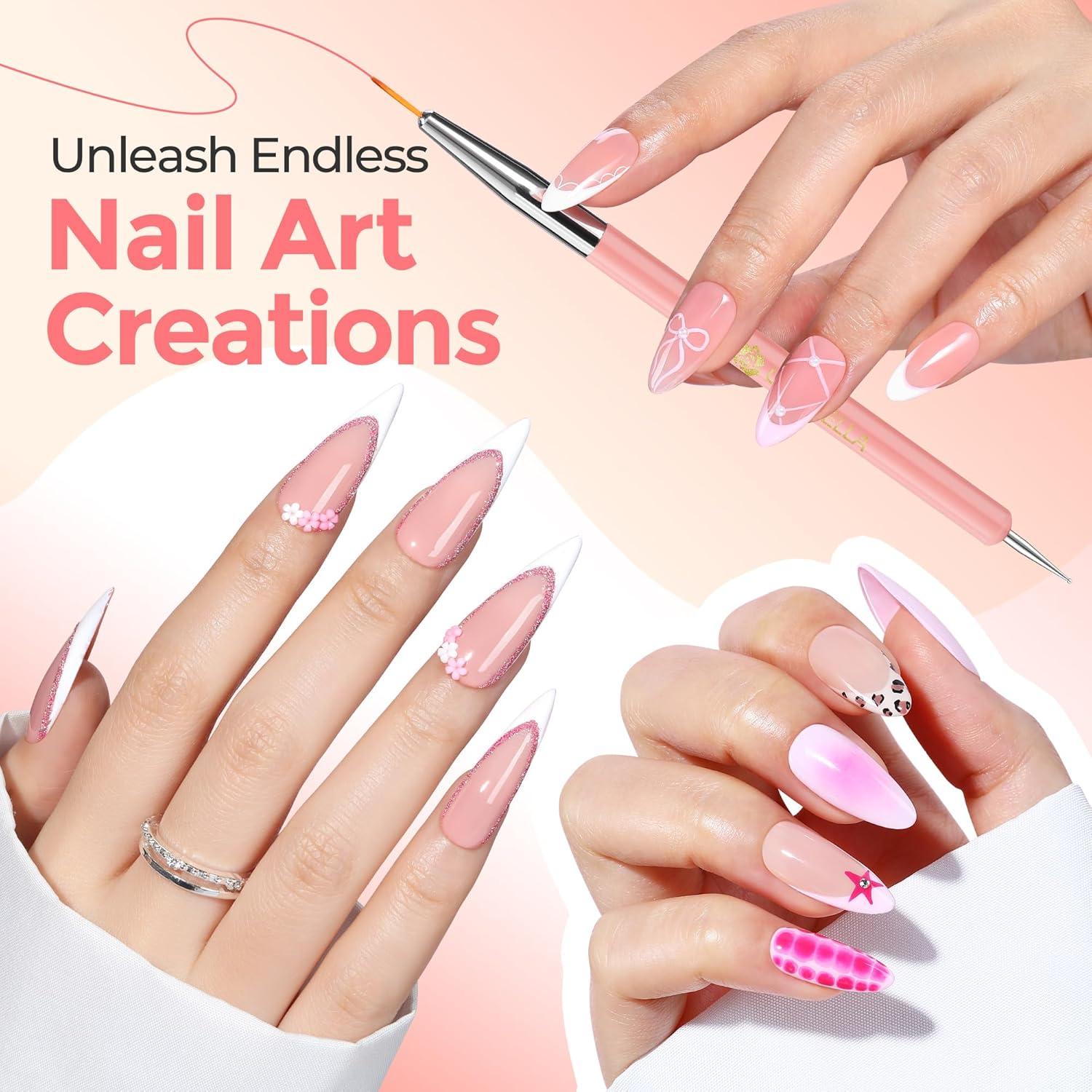 UNA GELLA Nail Art Brushes Set 6PCS White Color Nail Design Painting Brush Set Nail Dotting Tools Double-headed Nail Art Builder Gel Polish Liner Brushes for DIY Nail Drawing Supplies(A-Pink)