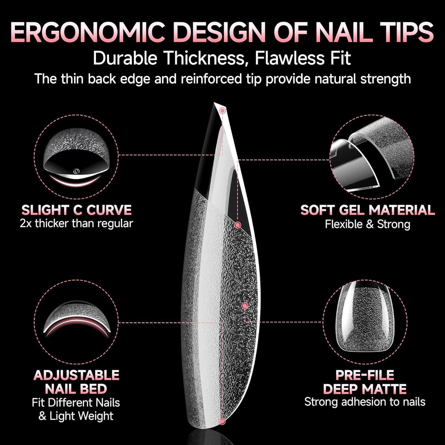 UNA GELLA Almond Fake Gel Nail Tips, 216pcs Medium Almond Pre Shaped Nails Tips for Long-Lasting Acrylic Nails, Perfect for DIY At Home French Style Nail Salon 12 Sizes(Long Coffin Nail Tips)