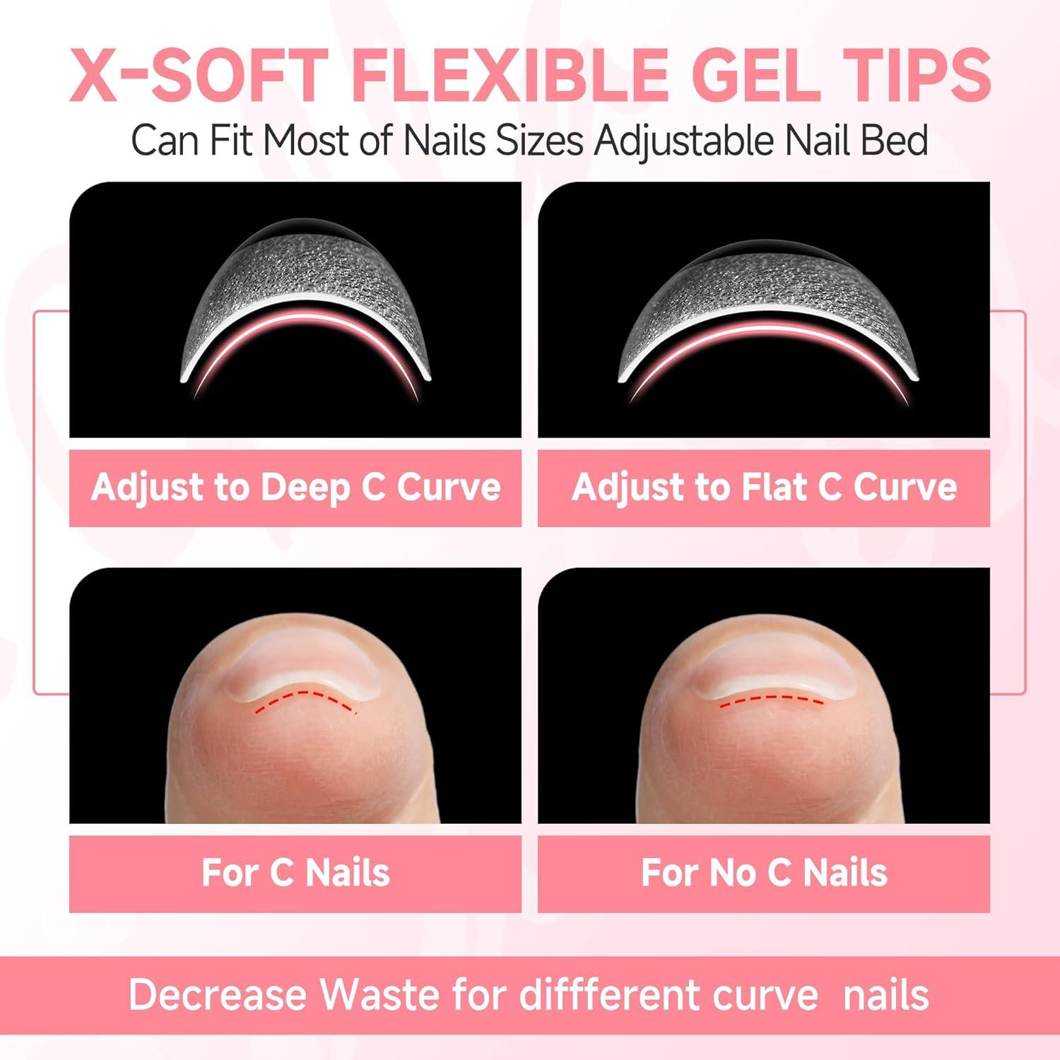 UNA GELLA Short Almond Nail Tips Thicker X-Soft Flexible Gel Nail Tips Pre-Etched 330PCS Full Cover Short Acrylic Fake Nails Strength Nails for Press on Nail Extensions DIY Salon 15 Sizes