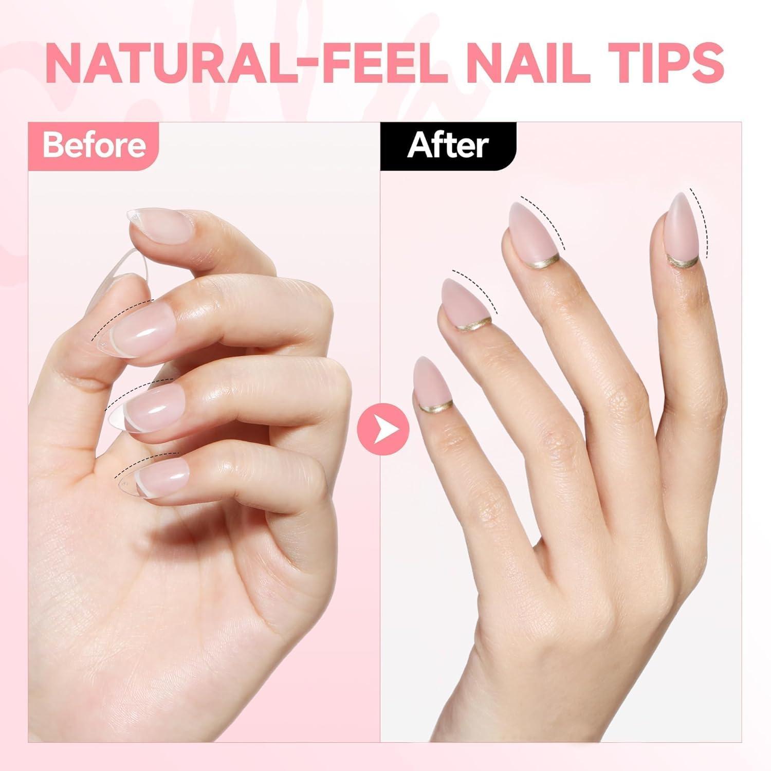 UNA GELLA Almond Fake Gel Nail Tips, 216pcs Medium Almond Pre Shaped Nails Tips for Long-Lasting Acrylic Nails, Perfect for DIY At Home French Style Nail Salon 12 Sizes(Medium Almond Nail Tips)