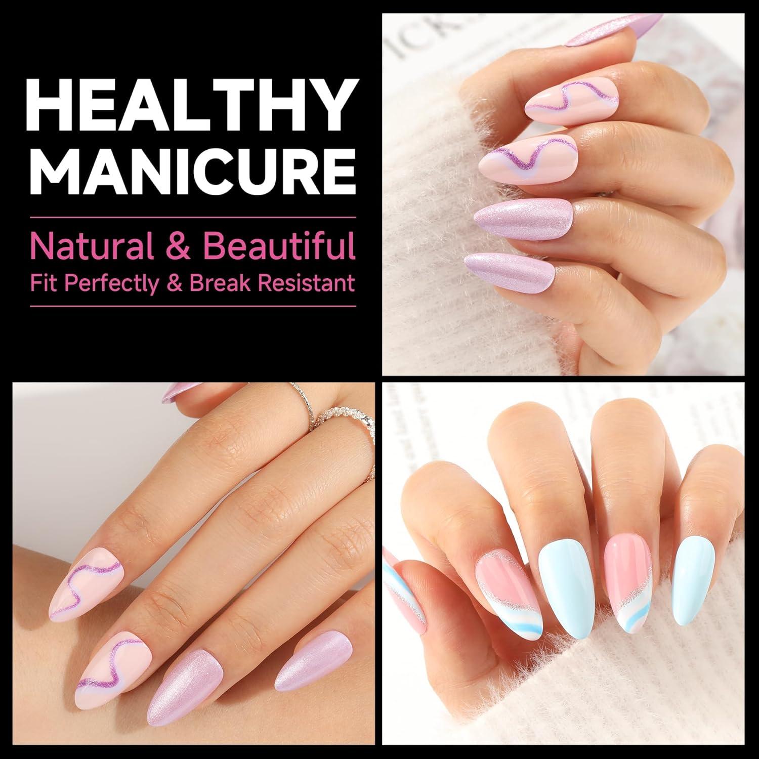UNA GELLA Almond Fake Gel Nail Tips, 216pcs Medium Almond Pre Shaped Nails Tips for Long-Lasting Acrylic Nails, Perfect for DIY At Home French Style Nail Salon 12 Sizes(Short Almond Nail Tips)