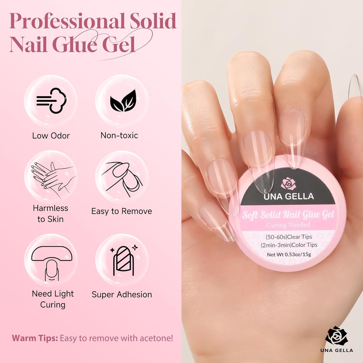 UNA GELLA Solid Nail Glue Gel | Soft Gel Nail Tips 10ml | Lamp Curing Needed Soak Off Glue Super Strong Nail G lue G el for Acrylic Nails For Nail Extensions for Jelly Tips
