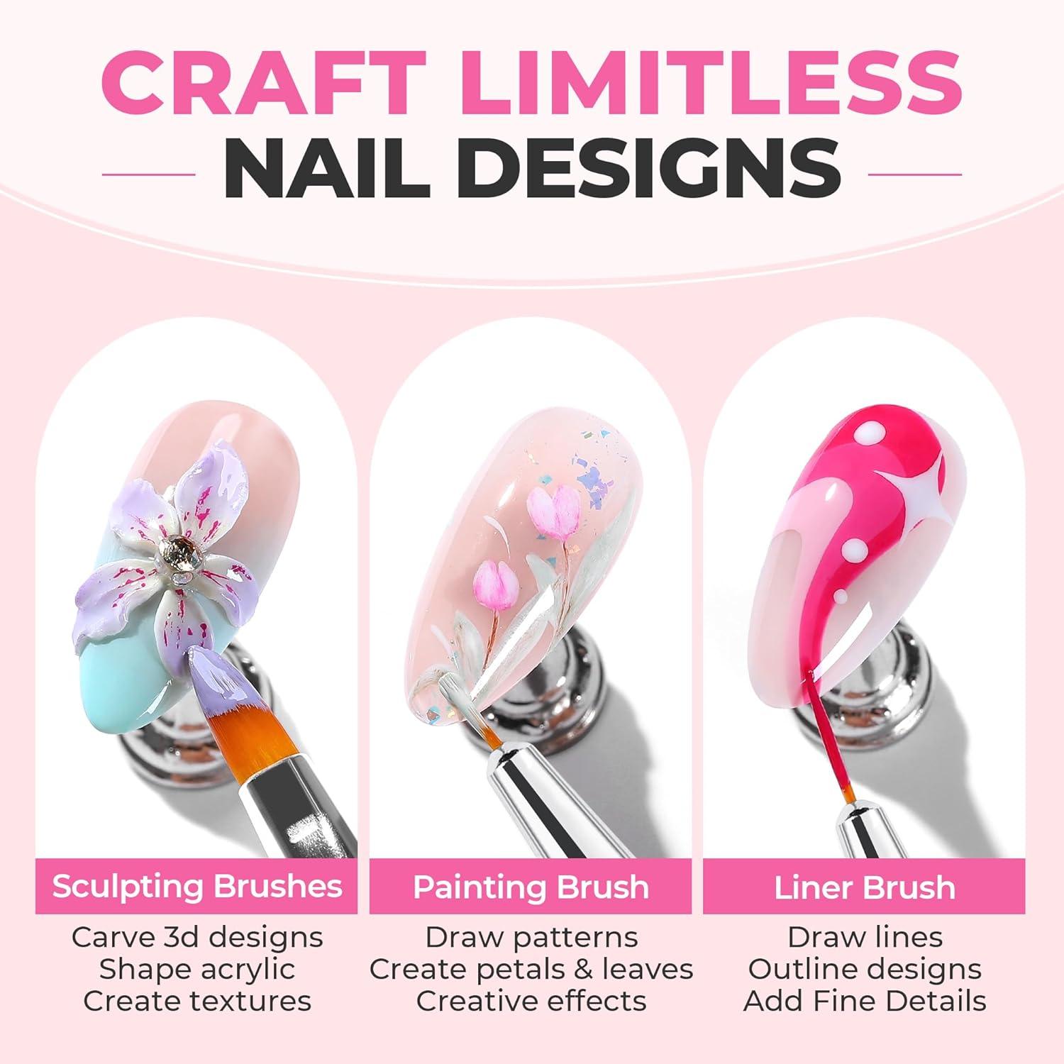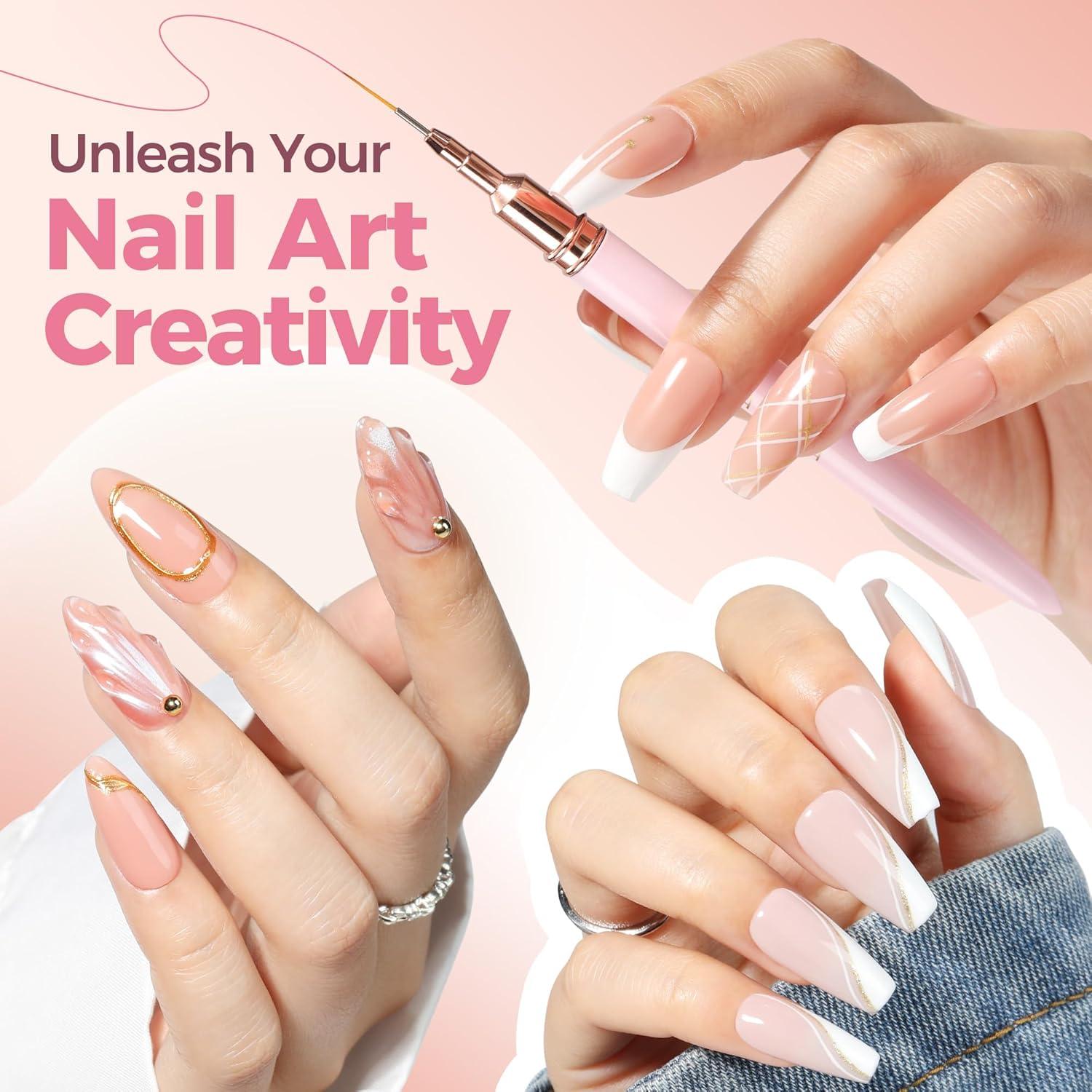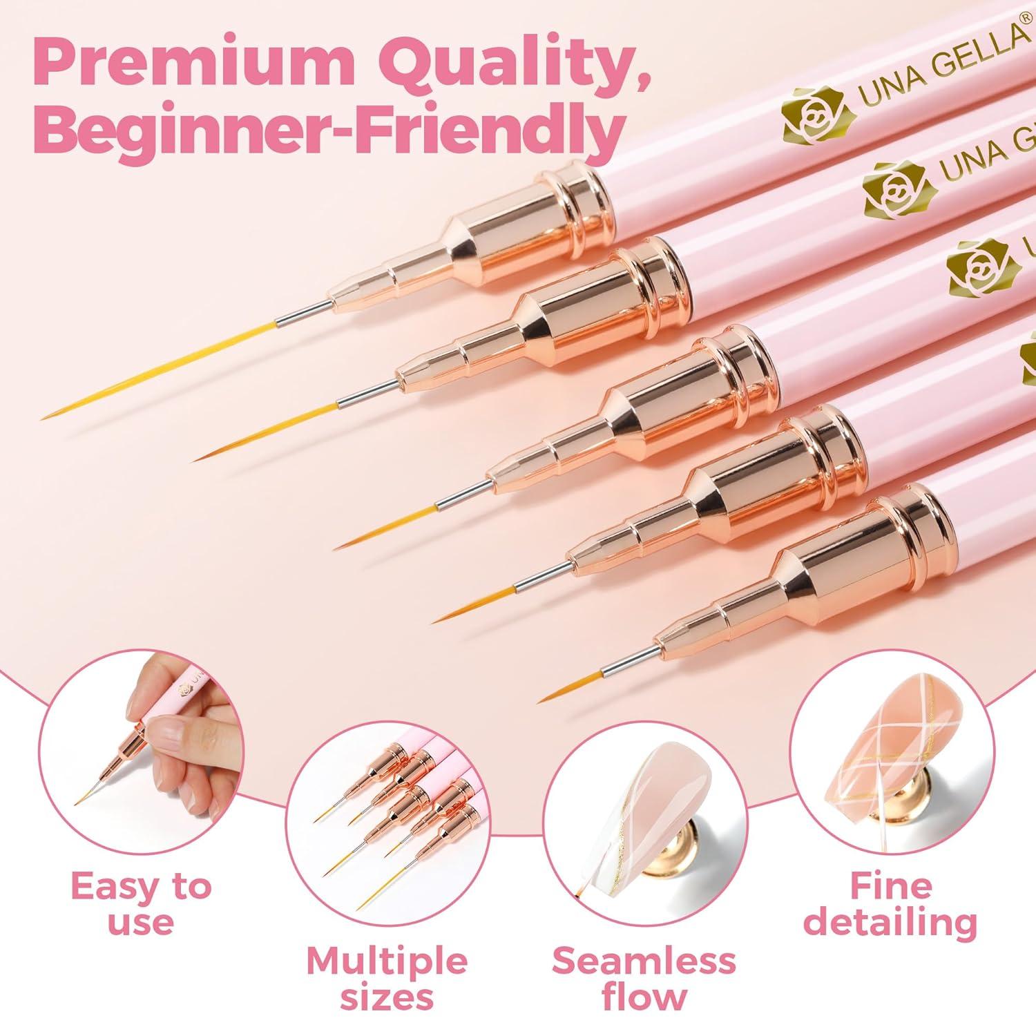 UNA GELLA Nail Art Brushes Metallic, 5 Count Liner Pens Set For Nail Art Gel Polish, Detail Nail Art Design Painting Brush Set For Nails Gel Fine Drawing Nail Tools, Sizes 7/9/11/15/25mm(Pink)