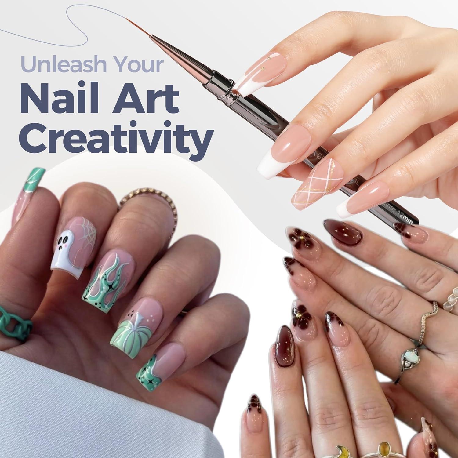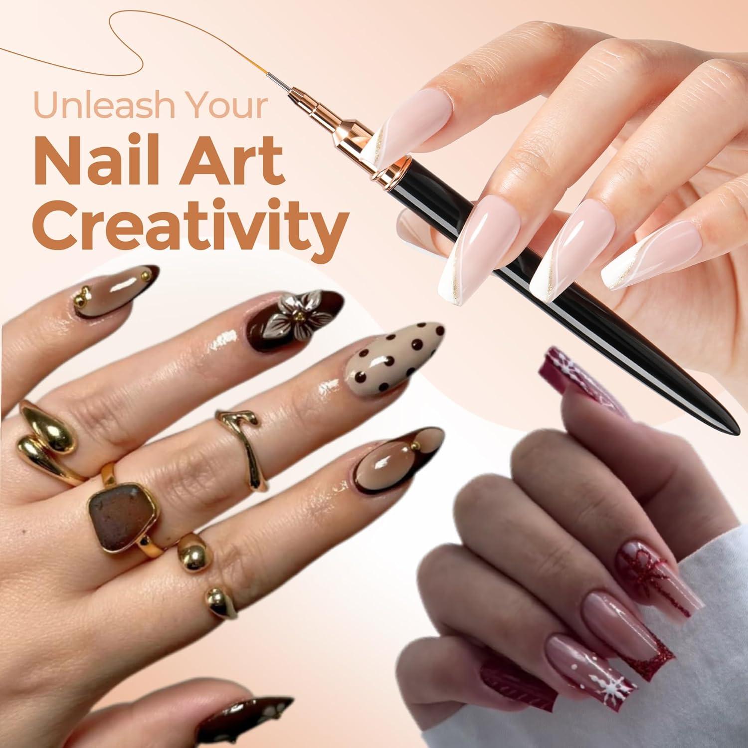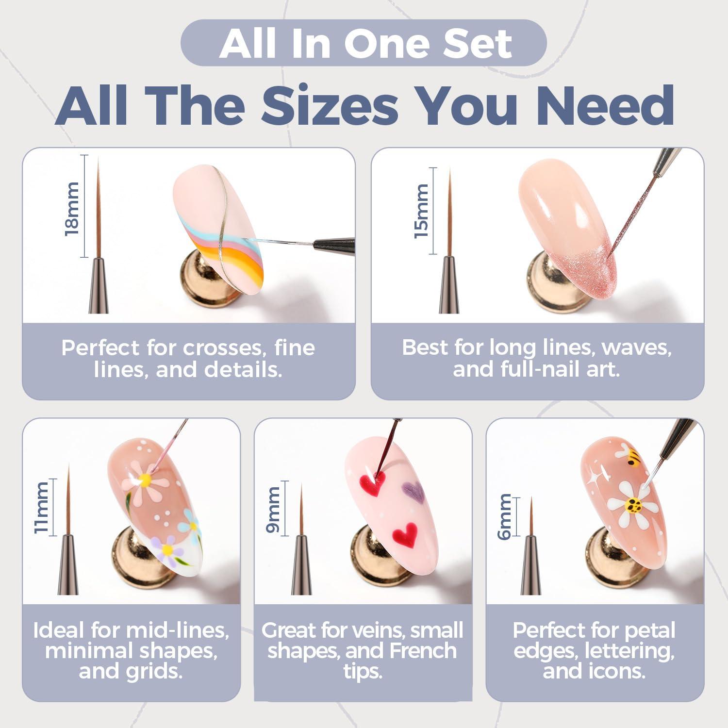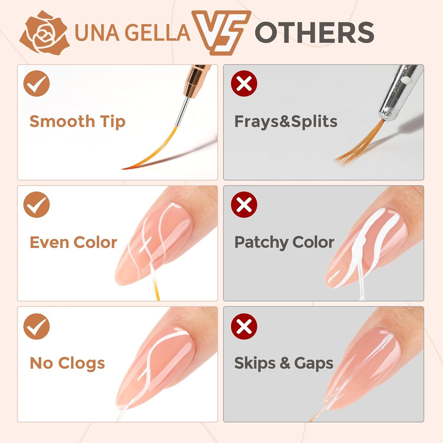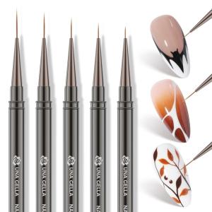 UNA GELLA Nail Art Brushes Metallic, 5 Count Liner Pens Set For Nail Art Gel Polish, Detail Nail Art Design Painting Brush Set For Nails Gel Fine Drawing Nail Tools, Sizes 7/9/11/15/25mm(White)