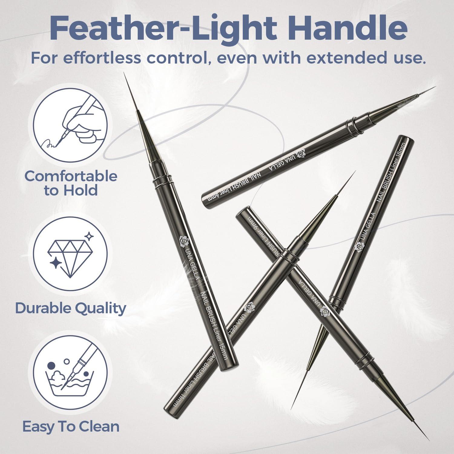 UNA GELLA Nail Art Brushes Metallic, Liner Pens 5Pcs Set For Nail Art Gel Polish, Gray Color, Detail Nail Art Design Painting Brush Set For Nails Gel Fine Drawing Nail Tools, 6/9/11/15/18mm Sizes(Black)