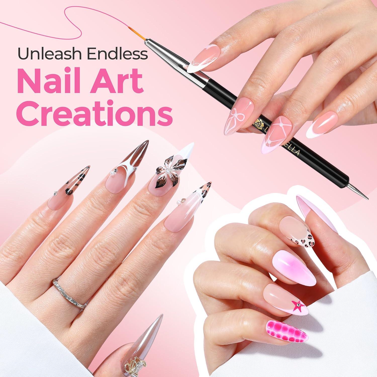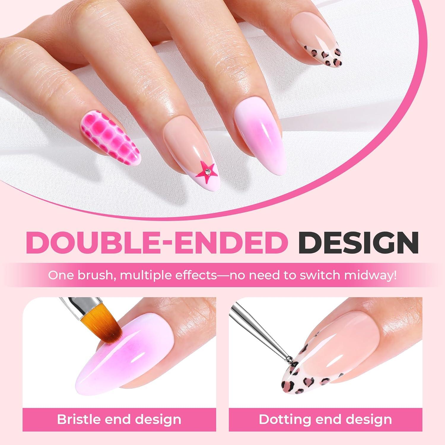 UNA GELLA Nail Art Brushes Set 6PCS White Color Nail Design Painting Brush Set Nail Dotting Tools Double-headed Nail Art Builder Gel Polish Liner Brushes for DIY Nail Drawing Supplies(A-Pink)