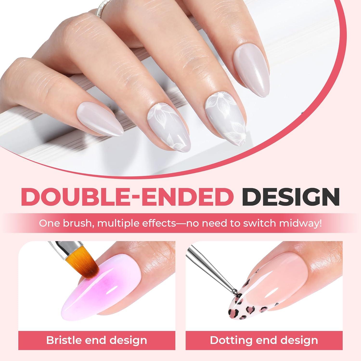UNA GELLA Nail Art Brushes Set 6PCS White Color Nail Design Painting Brush Set Nail Dotting Tools Double-headed Nail Art Builder Gel Polish Liner Brushes for DIY Nail Drawing Supplies(White)