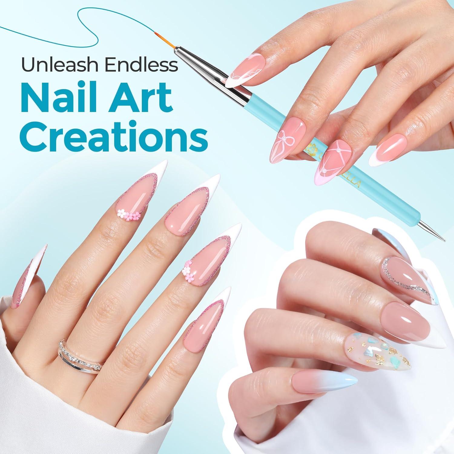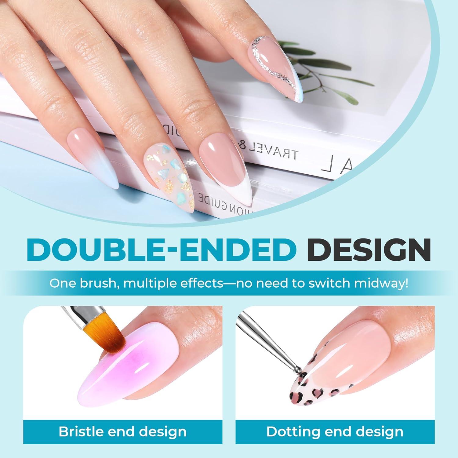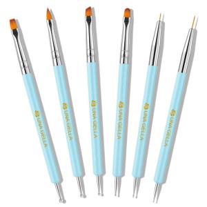 UNA GELLA Nail Art Brushes Set 6PCS White Color Nail Design Painting Brush Set Nail Dotting Tools Double-headed Nail Art Builder Gel Polish Liner Brushes for DIY Nail Drawing Supplies(Blue)