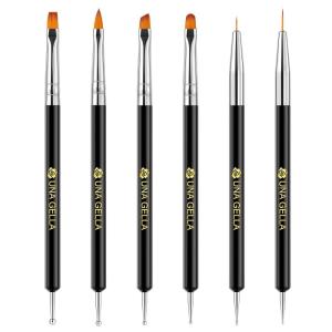 UNA GELLA Nail Art Brushes Set 6PCS Black Color Double-ended Acrylic Nail Design Brush Set Nail Dotting Tools Nail Art Gel Polish Liner Brushes for Gel Polish Painting DIY Nail Salon(Black)