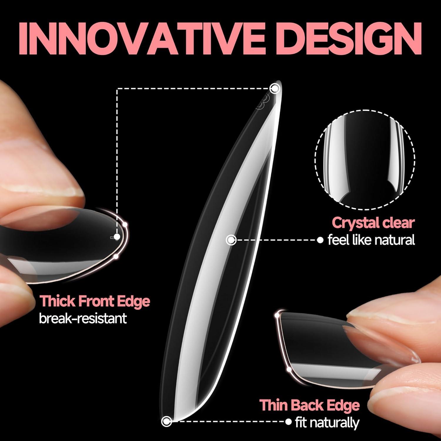 UNA GELLA Lamp-Free Semi Solid Nail Glue for Press Ons: 10ml and Soak Off Gel Nail Glue Remover for False Acrylic Nails 12ml, Super Strong G lue Quick Removal Kit(AlmondNail)