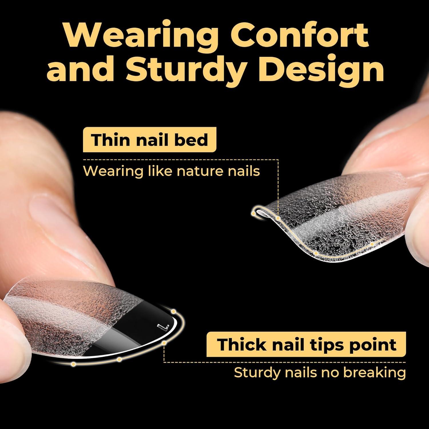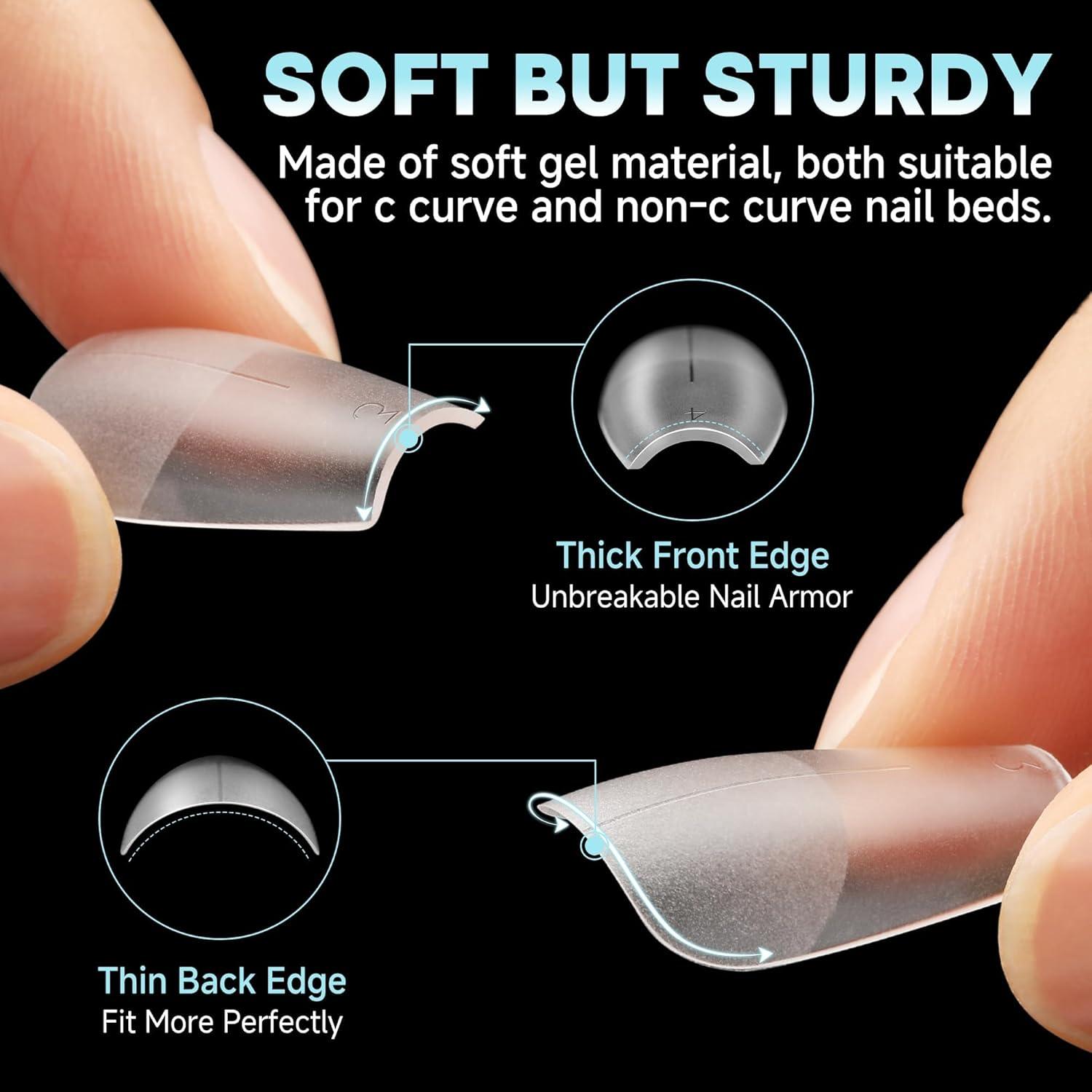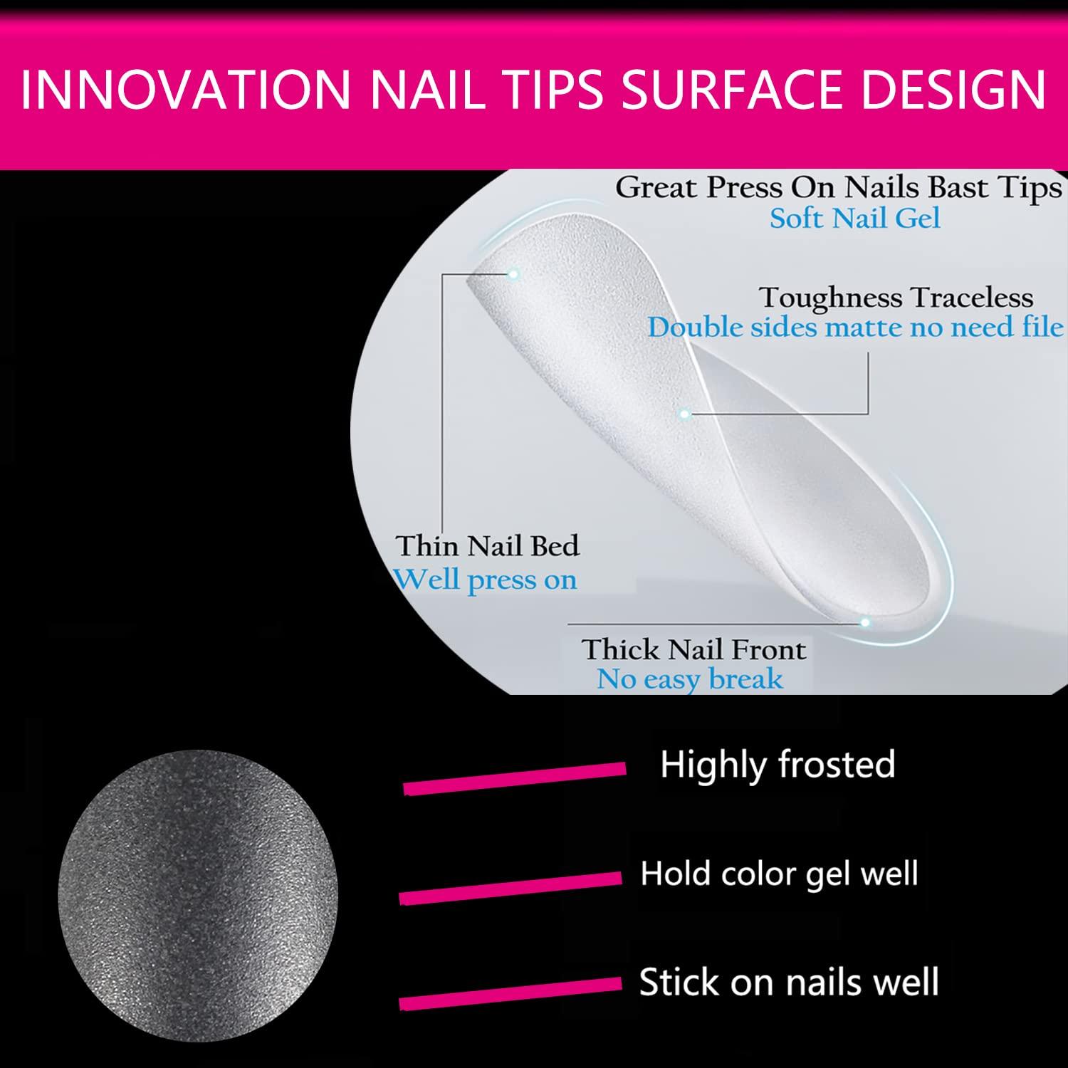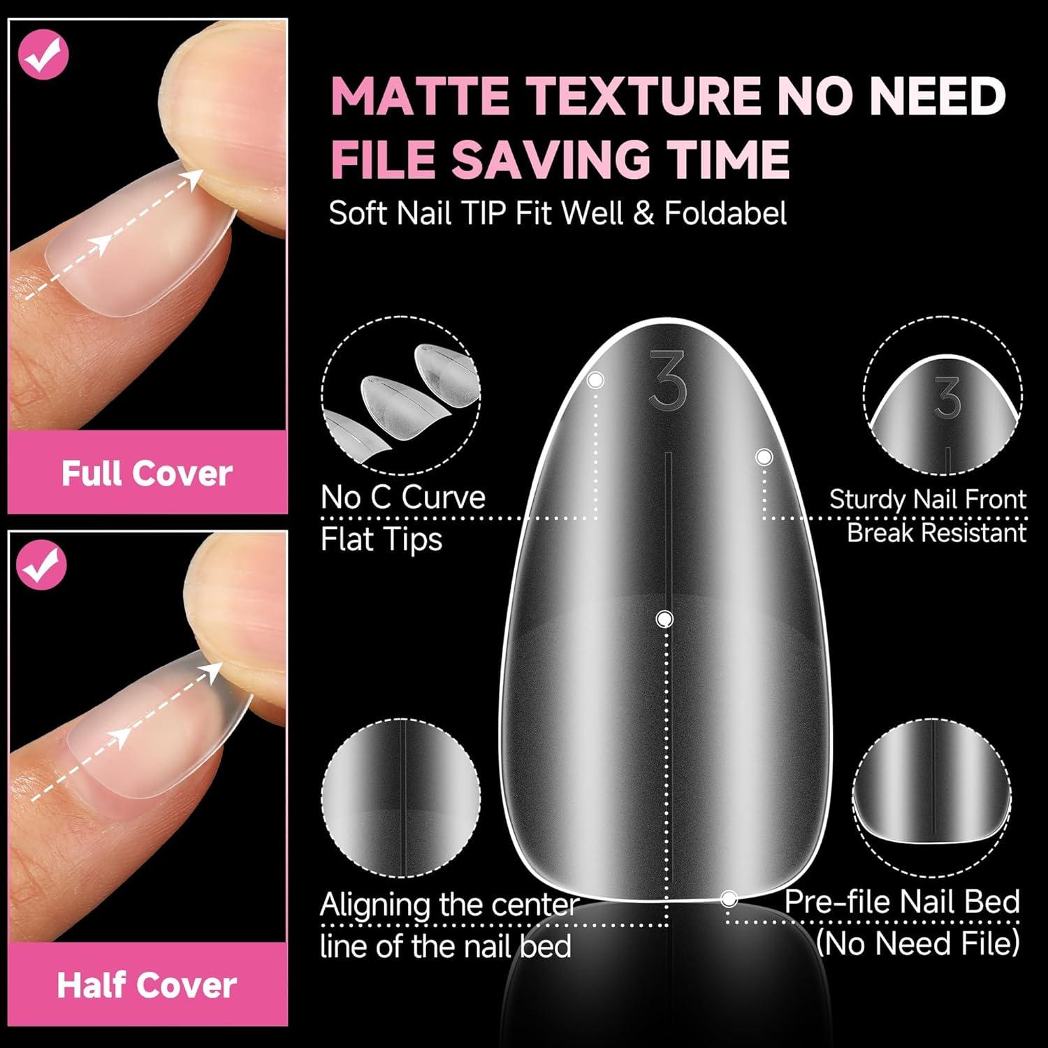 UNA GELLA Almond Shape Nail Tips Half Cover 216pcs Medium Almond Gel Nail Tips Pre-buff Matte Soft Gel Acrylic Press On Nails Easier Nail Extentions Art Salon 12 Sizes(B1-Medium Almond Half)