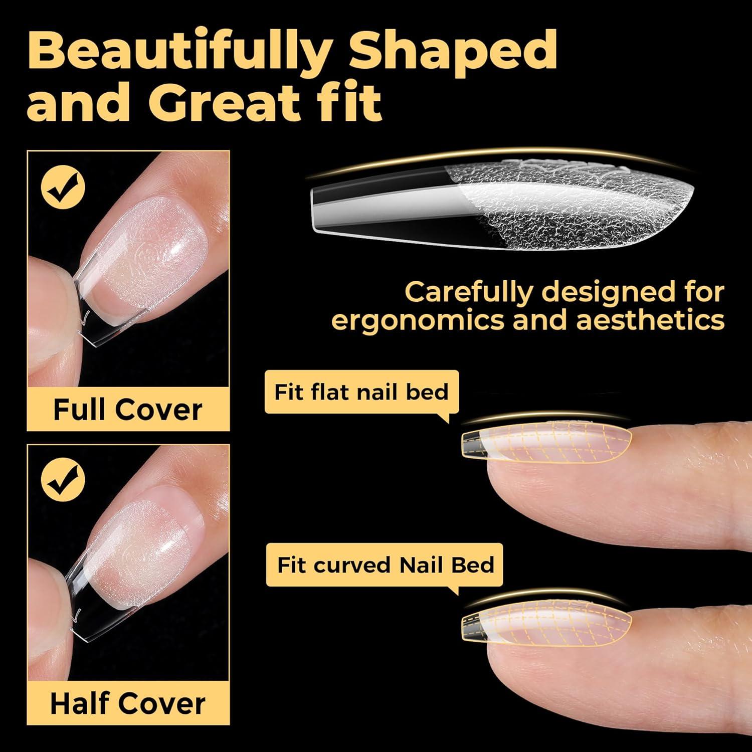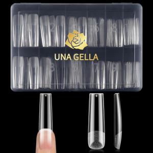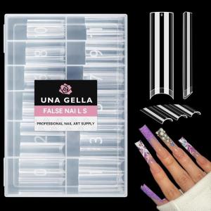UNA GELLA Extra Long Coffin Fake Nails 504pcs Double Side Pre-shape Gel Acrylic XL Nail Tips for Half Cover Nail Extension Home DIY Nail Salon 12 Sizes Gelly Tips