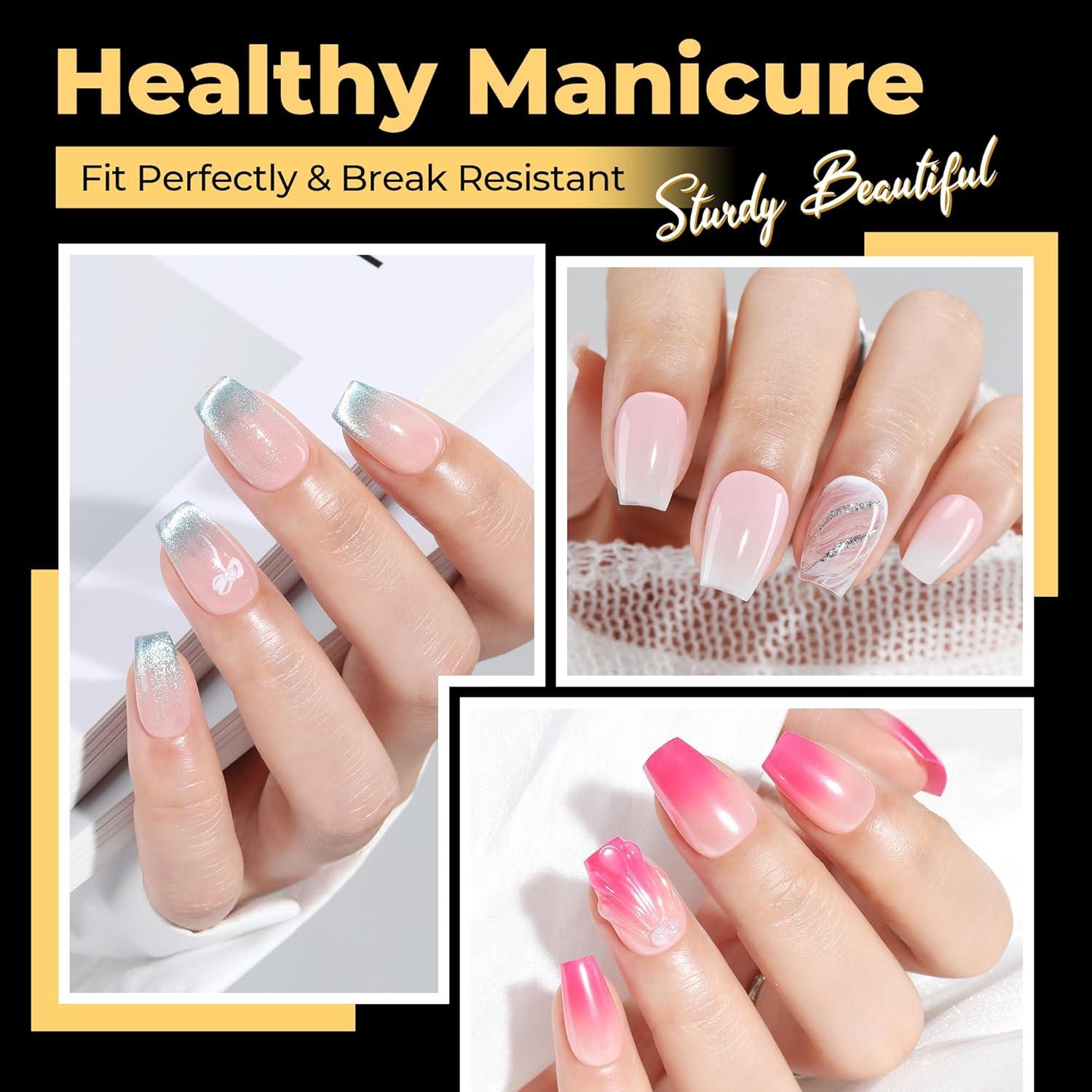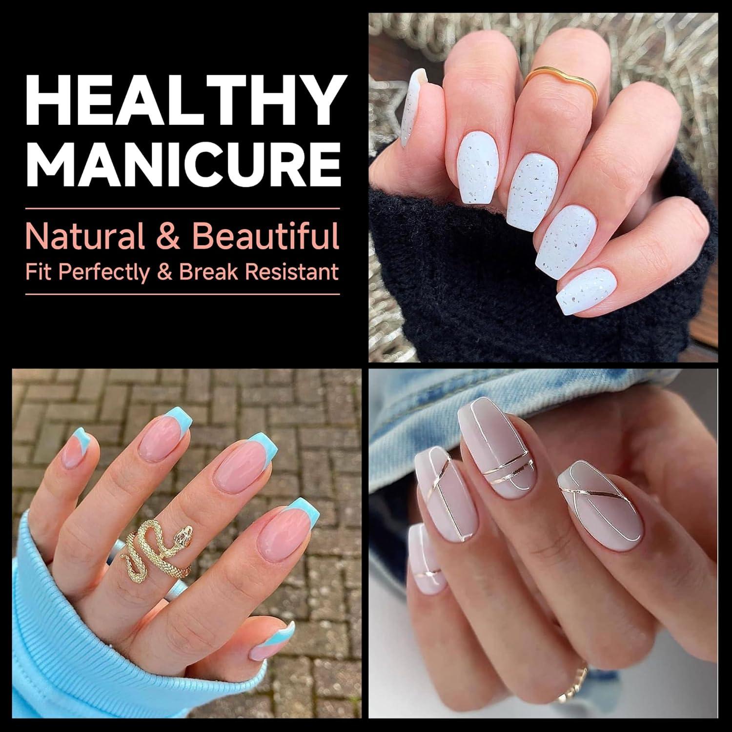 UNA GELLA Square Nail Tips X-Soft Thicker Flexible Gel Nails 330PCS Pre-etched Square Nail Tips Press on Full Cover Acrylic Fake Nails Strength Clear Nails for Nail Extensions DIY Salon 15 Sizes(Medium Square)