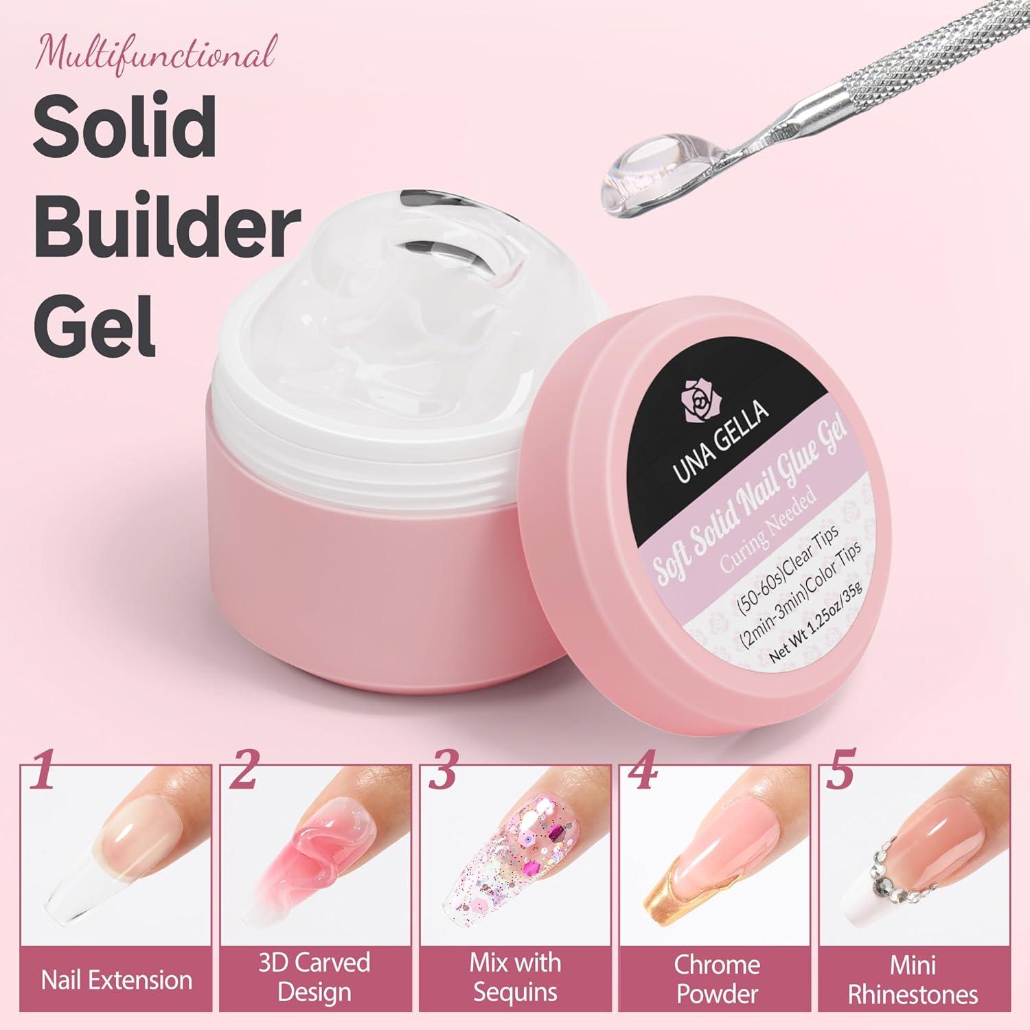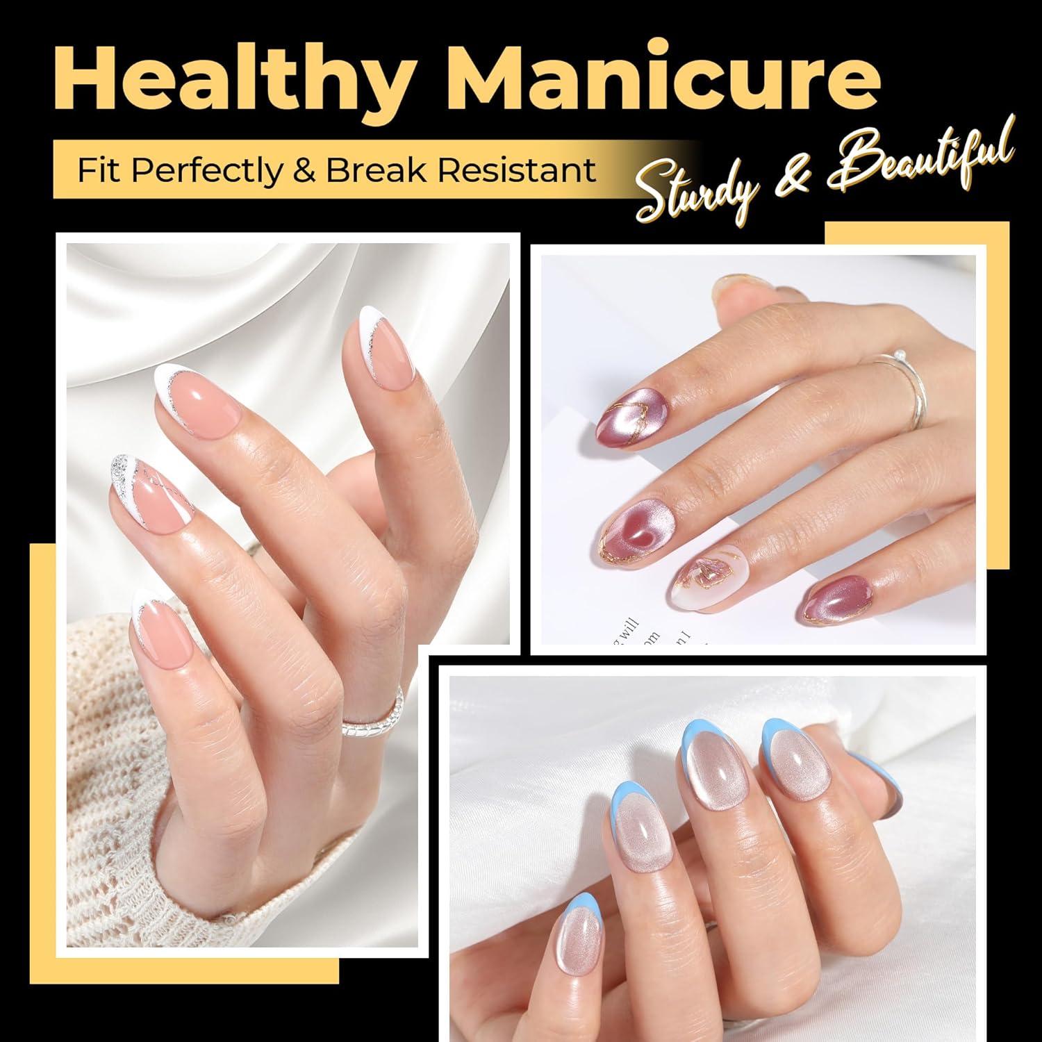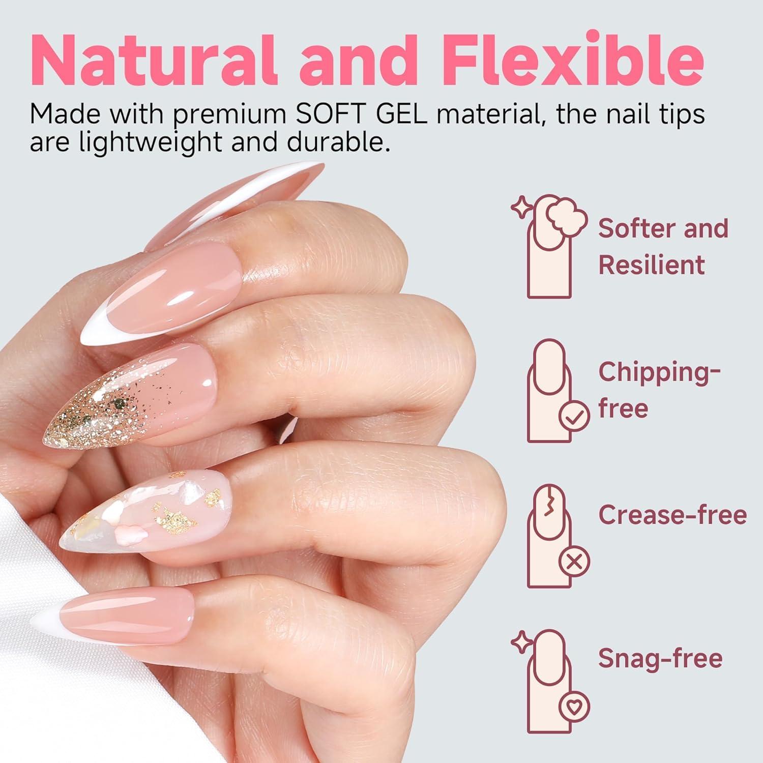 UNA GELLA Almond Fake Gel Nail Tips, 216pcs Medium Almond Pre Shaped Nails Tips for Long-Lasting Acrylic Nails, Perfect for DIY At Home French Style Nail Salon 12 Sizes(3D Gel)