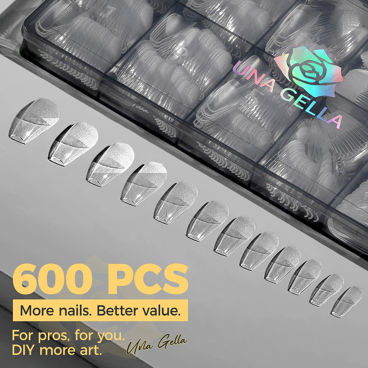 UNA GELLA Medium Almond Gel Nail Tips, 504PCS Clear Fake Nails Tips Shape Full Cover Acrylic Gel Nail Extension For Diy Home Salon 12 Sizes(Medium Coffin)