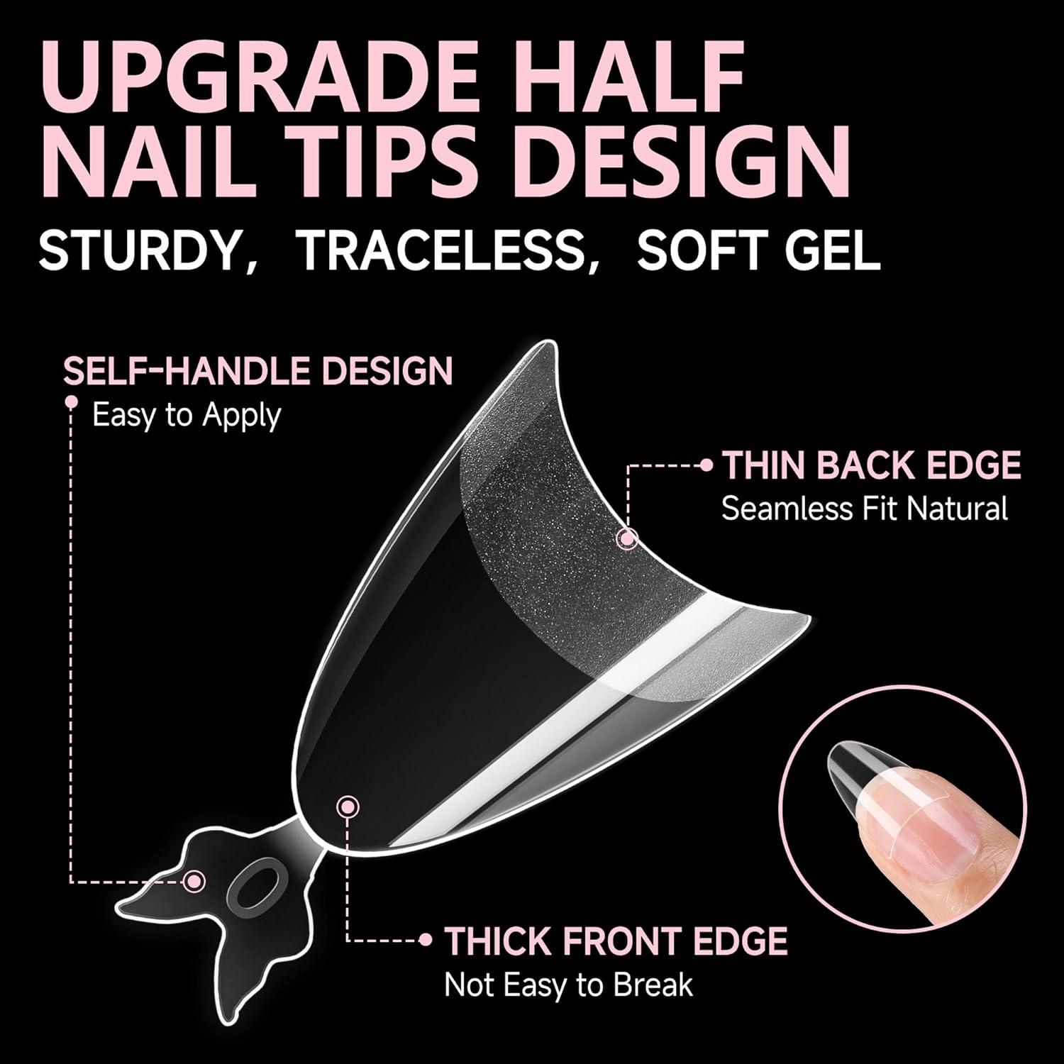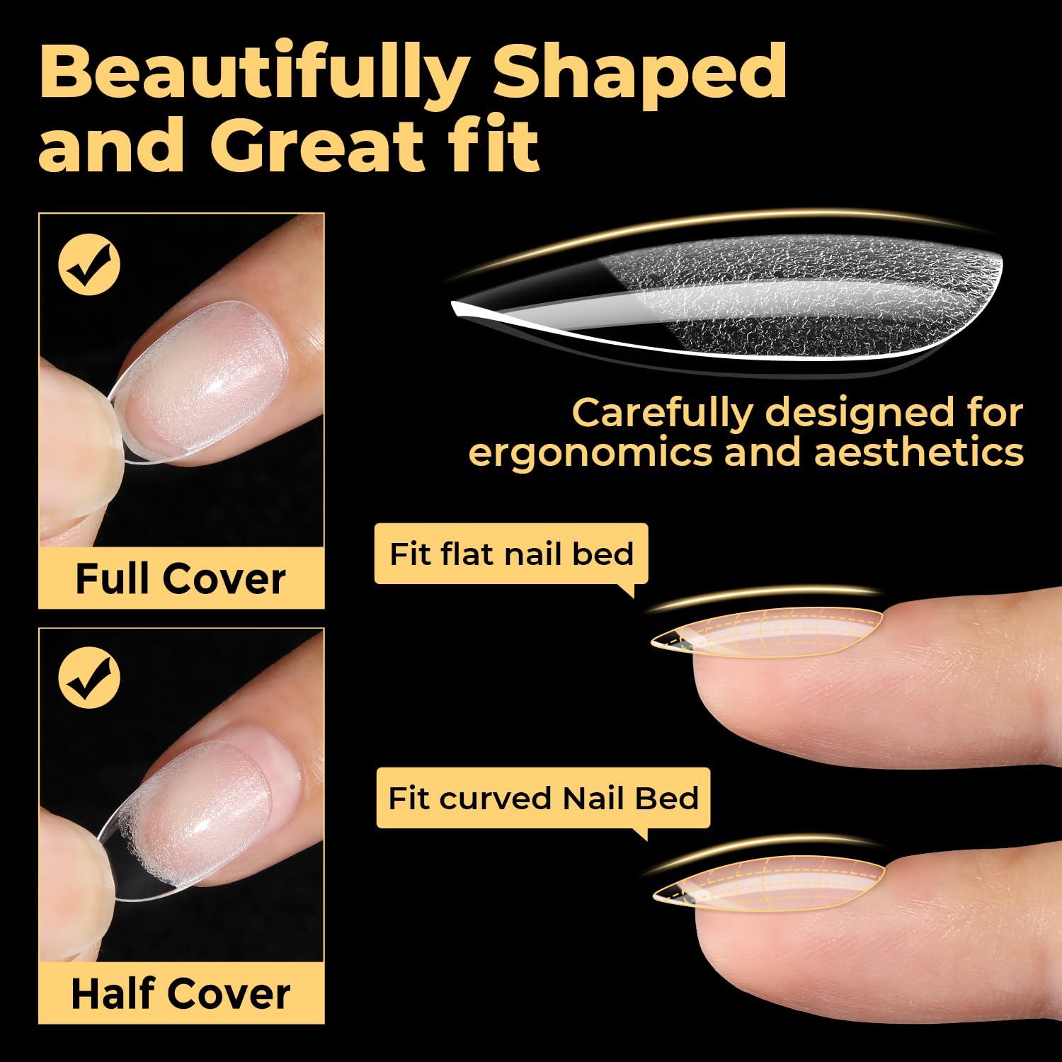 UNA GELLA Almond Shape Nail Tips Half Cover 216pcs Medium Almond Gel Nail Tips Pre-buff Matte Soft Gel Acrylic Press On Nails Easier Nail Extentions Art Salon 12 Sizes(B2-Half Long Stiletto)