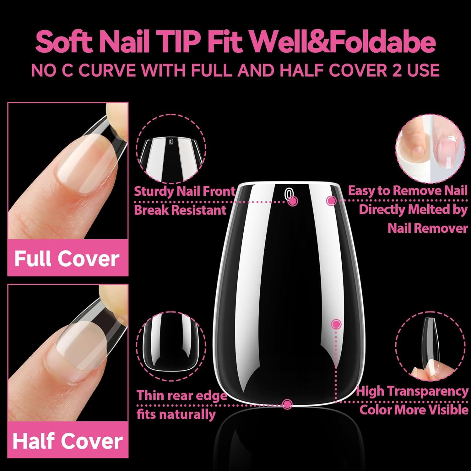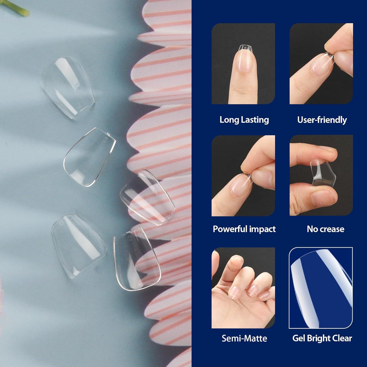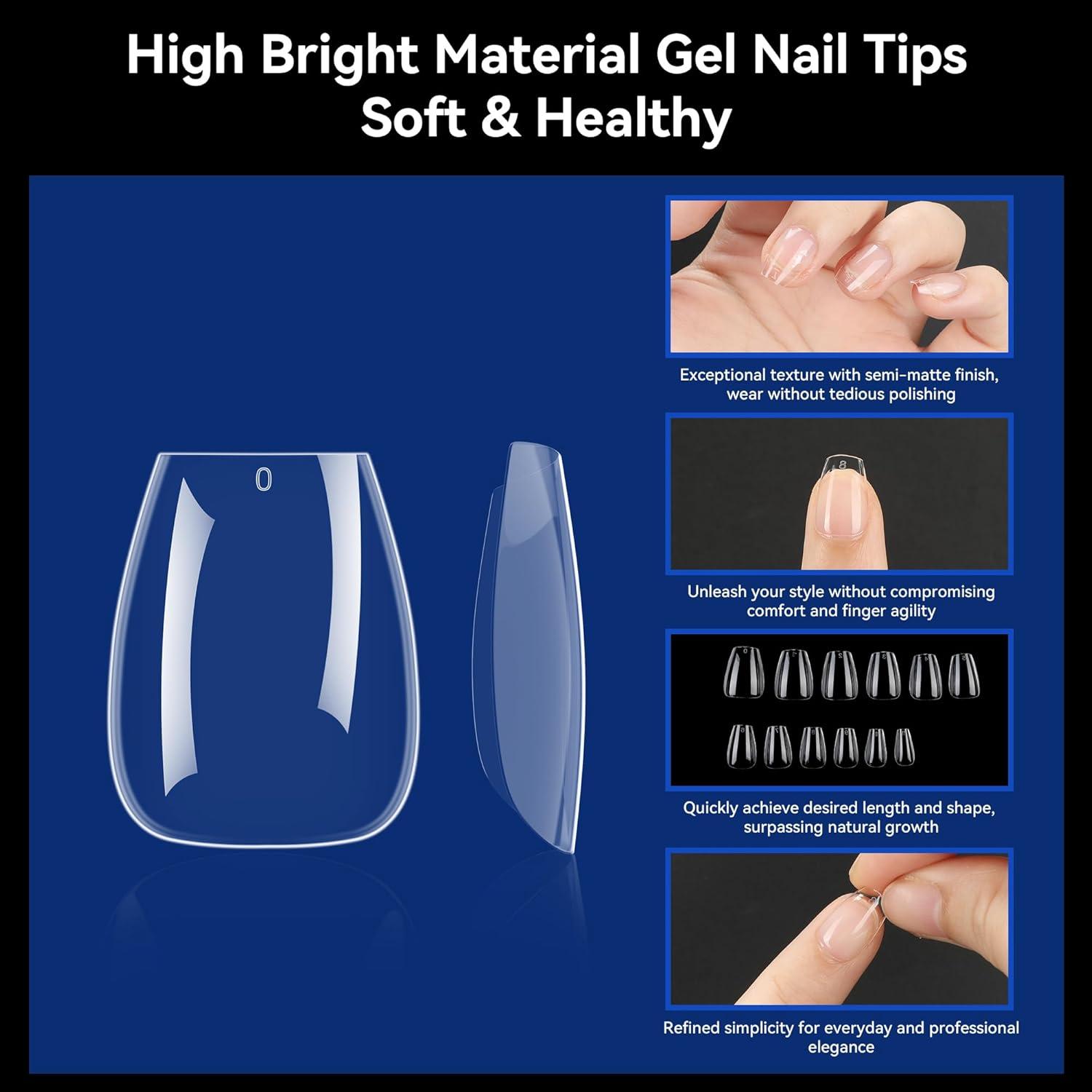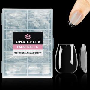 UNA GELLA Short Coffin Nail Tips 216pcs Short Coffin Gel Nail Tips 12 Sizes Full Cover Soft Gel Clear Fake Nails Extension for Home DIY Salon