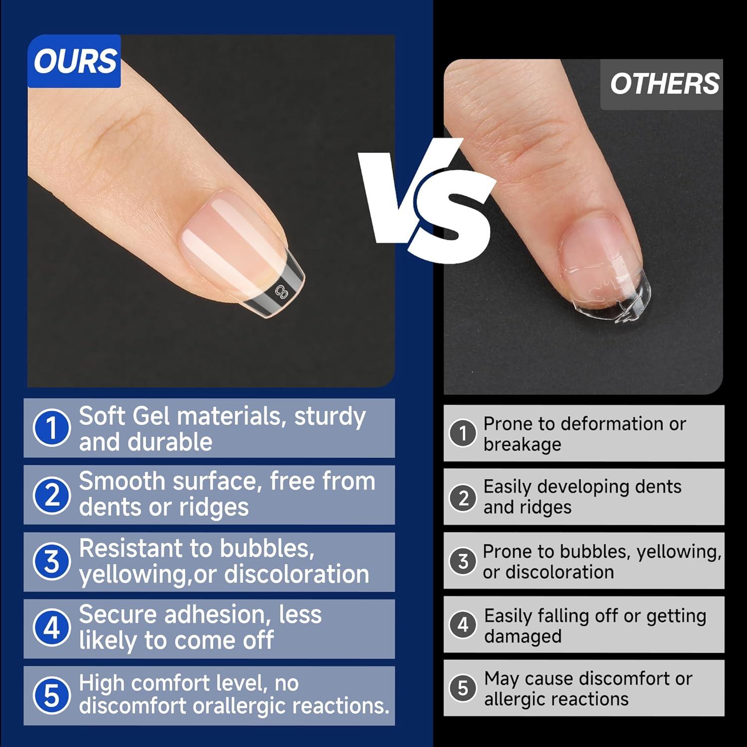 UNA GELLA Medium Almond Gel Nail Tips, 504PCS Clear Fake Nails Tips Shape Full Cover Acrylic Gel Nail Extension For Diy Home Salon 12 Sizes(Short Square)