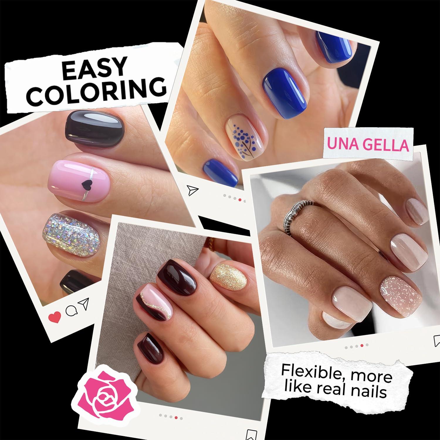 UNA GELLA Almond Fake Gel Nail Tips, 216pcs Medium Almond Pre Shaped Nails Tips for Long-Lasting Acrylic Nails, Perfect for DIY At Home French Style Nail Salon 12 Sizes(Short Square Nail Tips)