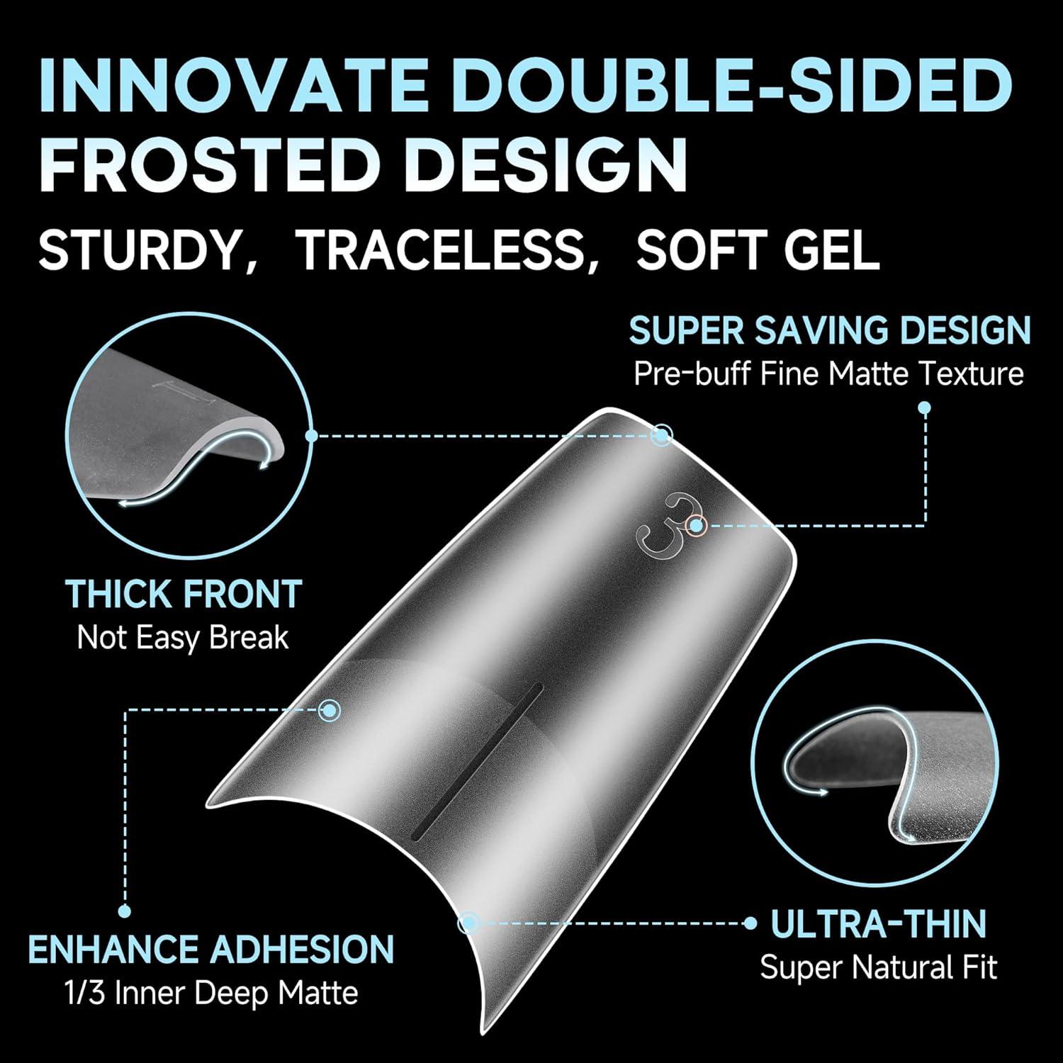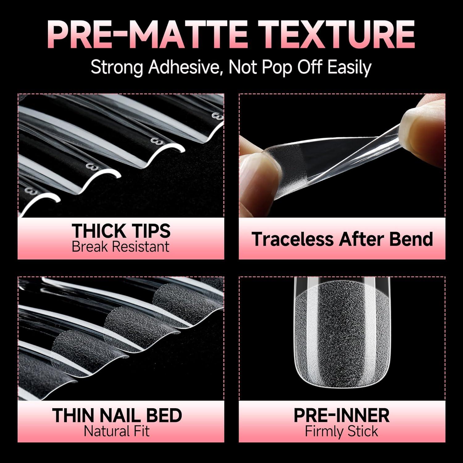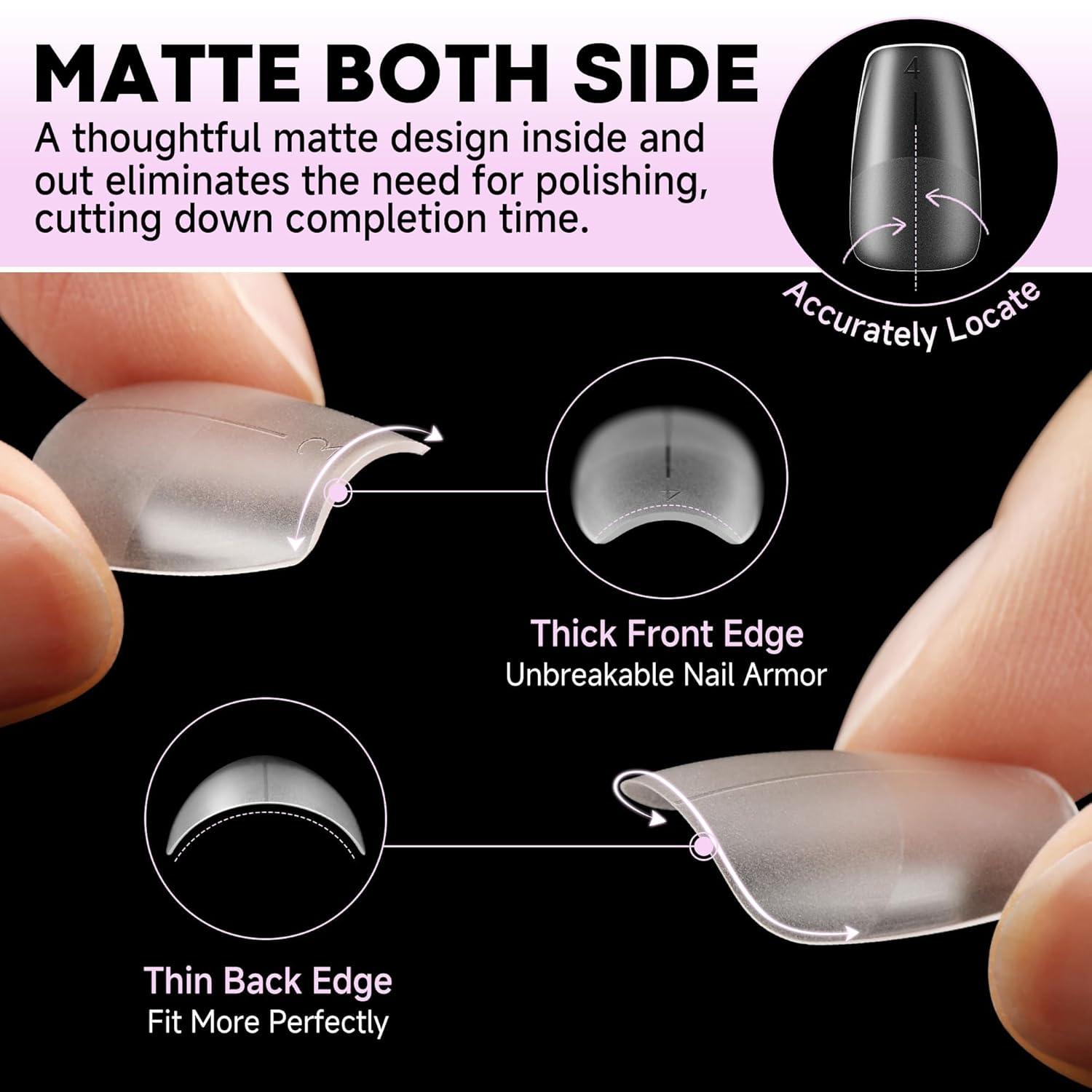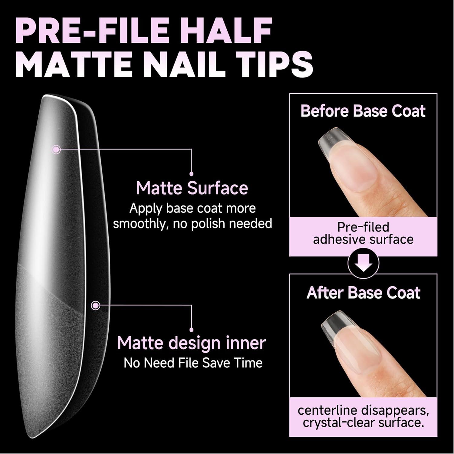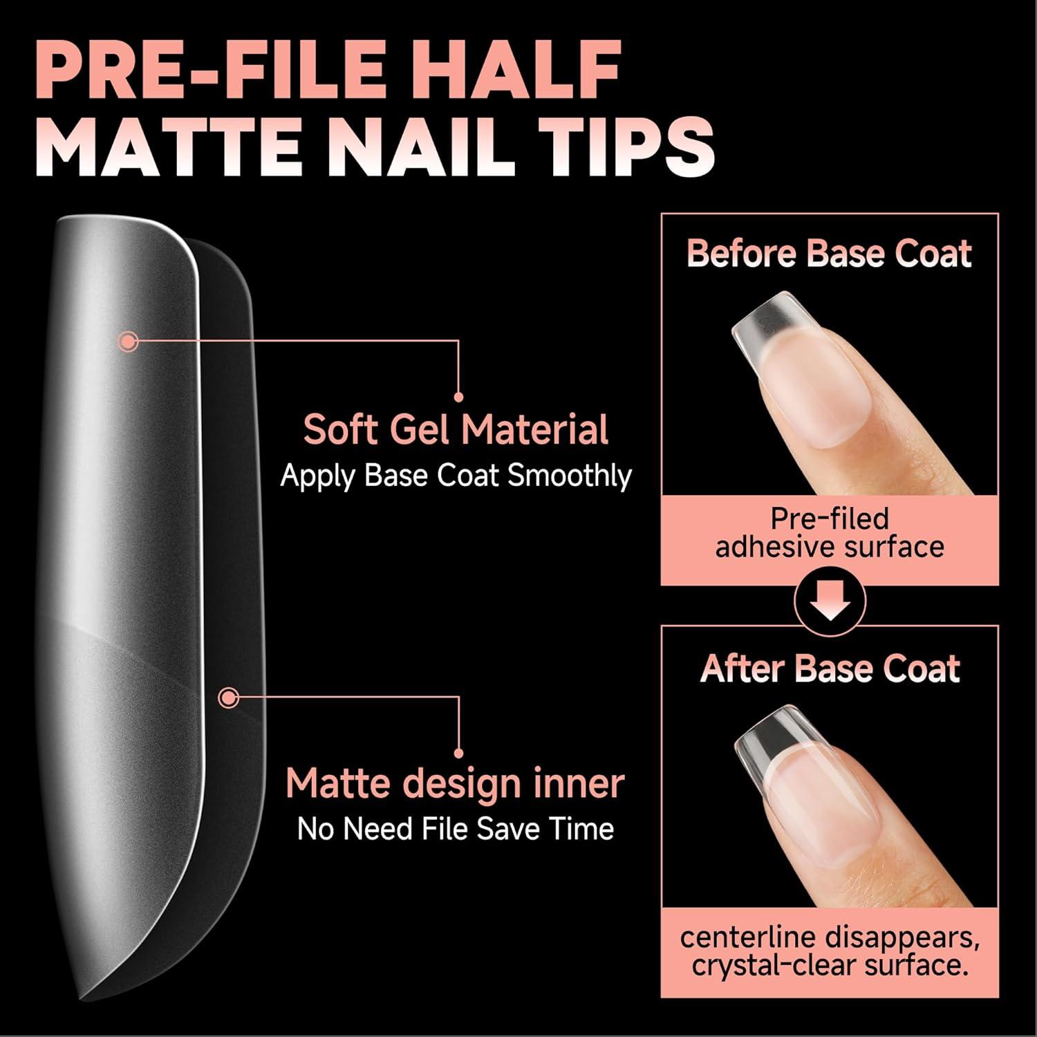 UNA GELLA Medium Coffin Gel Nail Tips Pre-buff Full Matte 504pcs Coffin Gel Nail Tips Half Cover Acrylic False Fake Nails Easily DIY Nail Art Nail Extension for Starter Pro, 12 Sizes