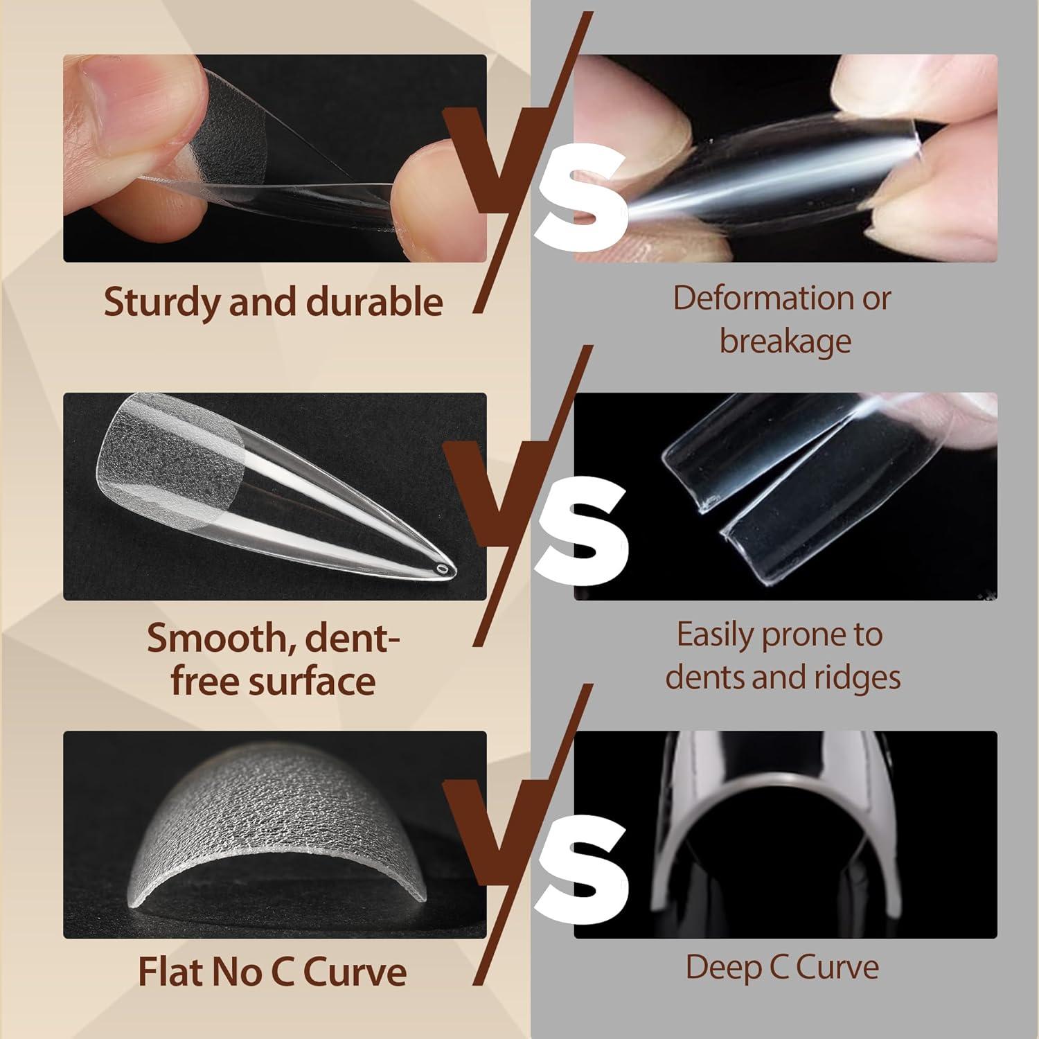 UNA GELLA 504PCS No C Curve Tapered Square Nail Tips, 3XL Extra Long Straight Clear Fake Nail Tips, 12 Sizes Half Cover Gel False Nails for Acrylic Nails Professional Salons Home DIY