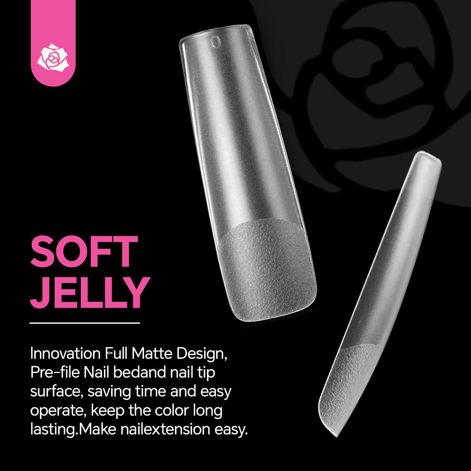 UNA GELLA Coffin Nails Tips Pre-buff Soft Gel Nail Tips Matte Medium Coffin False Nails Tips Acrylic Full Cover 504Pcs 15Sizes Gelly Press On Nails Fake Nail Tips for Nail Extension DIY Salon