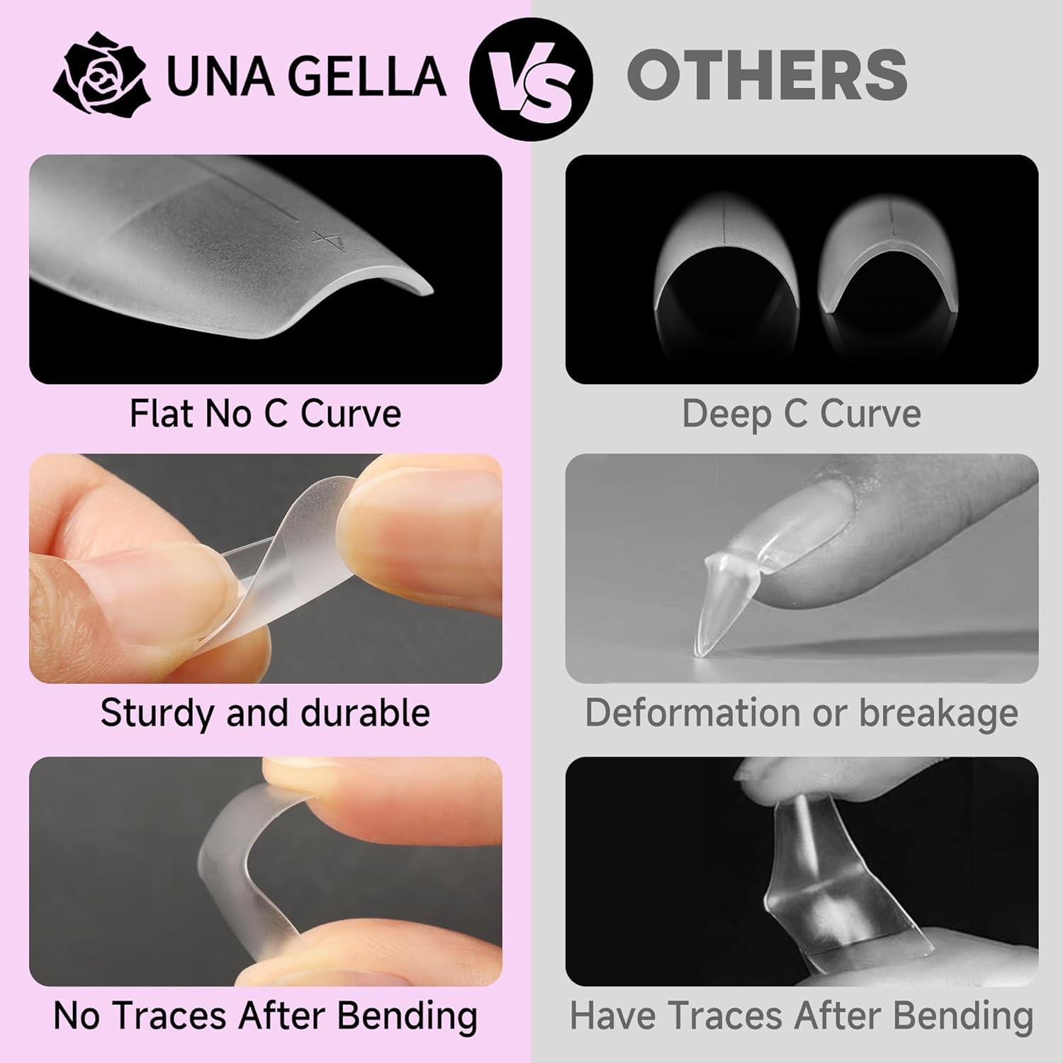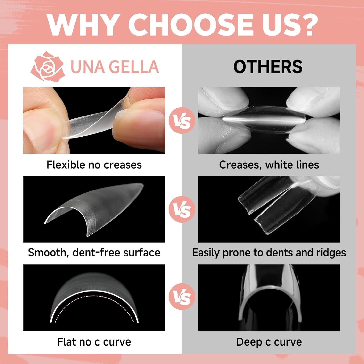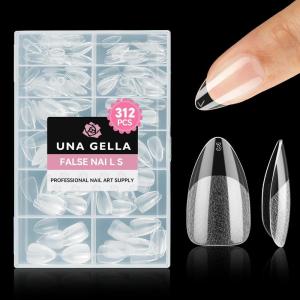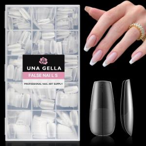 UNA GELLA Almond Fake Gel Nail Tips, 216pcs Medium Almond Pre Shaped Nails Tips for Long-Lasting Acrylic Nails, Perfect for DIY At Home French Style Nail Salon 12 Sizes(Long Coffin Nail Tips)