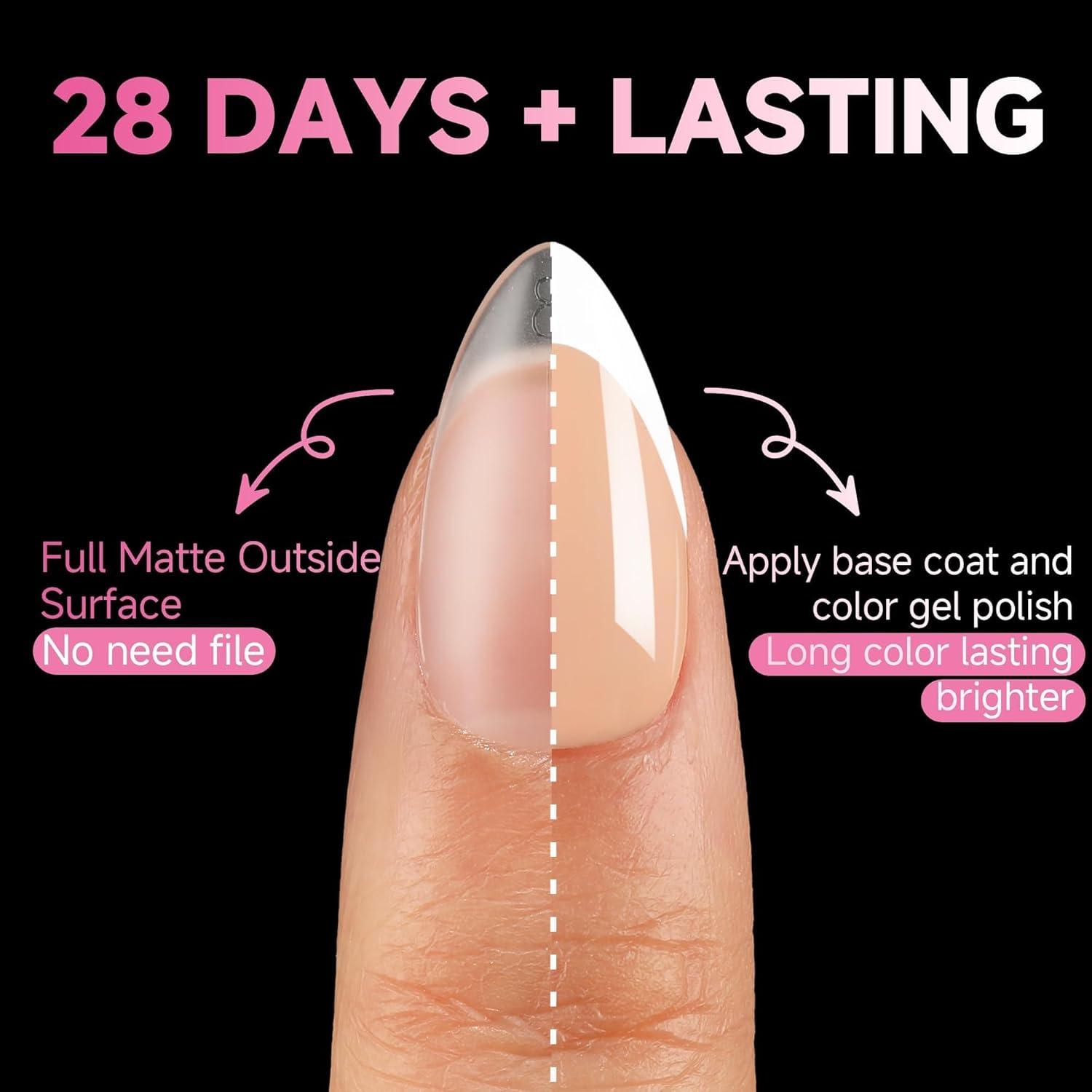 UNA GELLA Almond Shape Nail Tips Half Cover 216pcs Medium Almond Gel Nail Tips Pre-buff Matte Soft Gel Acrylic Press On Nails Easier Nail Extentions Art Salon 12 Sizes(A0-Short Almond Half)