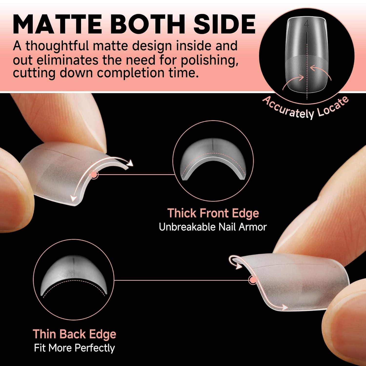 UNA GELLA Almond Fake Gel Nail Tips, 216pcs Medium Almond Pre Shaped Nails Tips for Long-Lasting Acrylic Nails, Perfect for DIY At Home French Style Nail Salon 12 Sizes(Medium Square Matte Nail Tips)