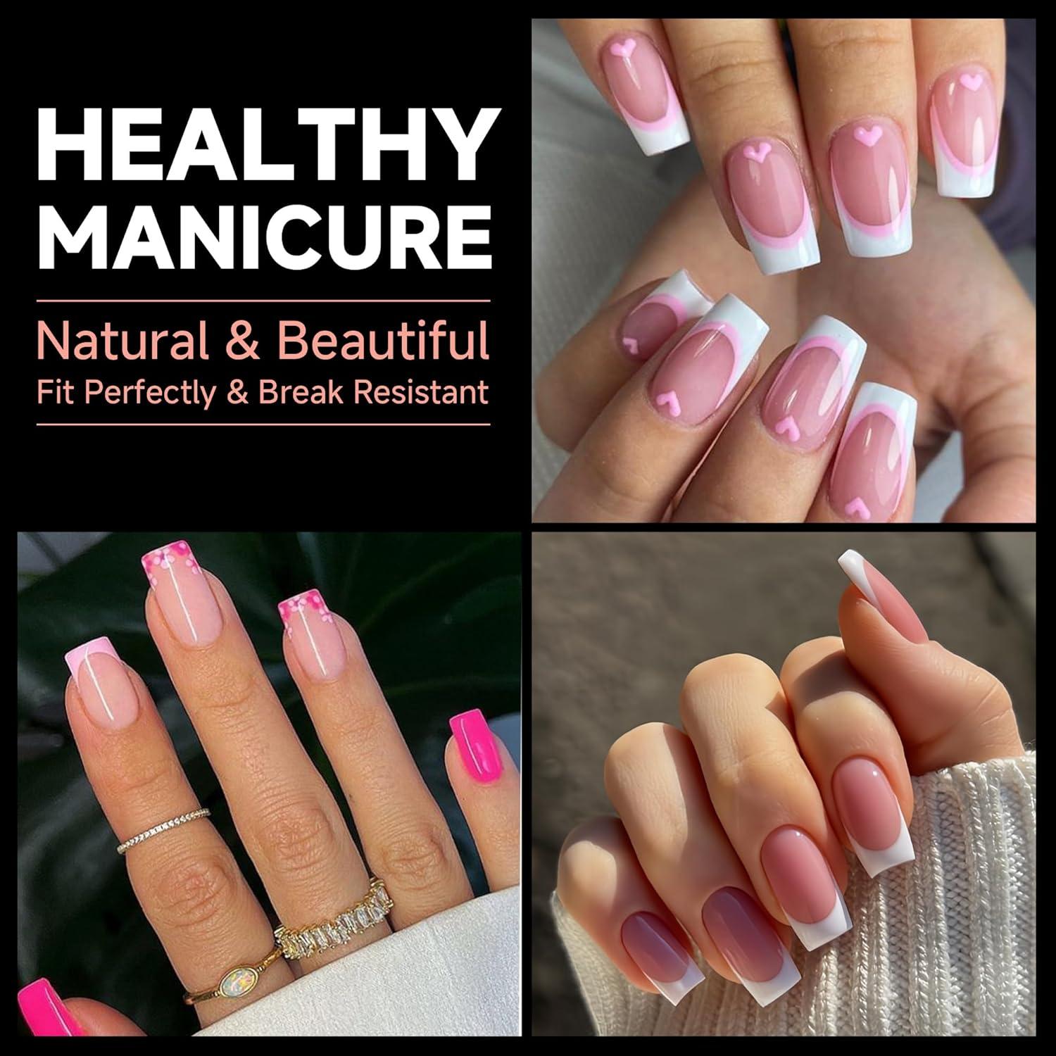 UNA GELLA Clear Gel Nail Tips Square No C Curve 504pcs French Style Square Acrylic Nail Tips Pre-inner Half Cover Faster Gel Nail Extension Home DIY French Press On Nails 12 Sizes