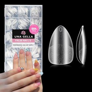 UNA GELLA Medium Almond Gel Nail Tips, 504PCS Clear Fake Nails Tips Shape Full Cover Acrylic Gel Nail Extension For Diy Home Salon 12 Sizes(MediumAlmond)