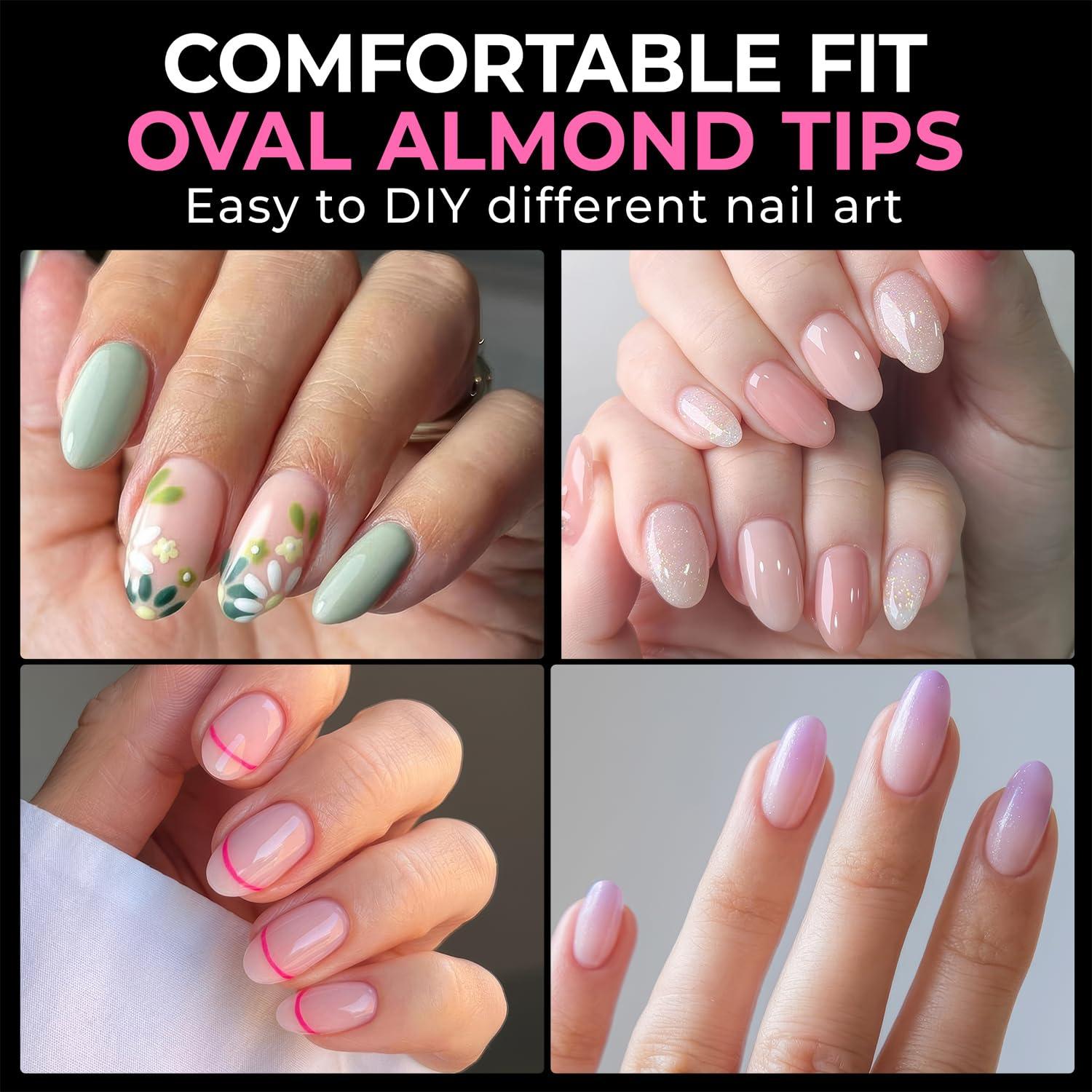 UNA GELLA Almond Fake Gel Nail Tips, 216pcs Medium Almond Pre Shaped Nails Tips for Long-Lasting Acrylic Nails, Perfect for DIY At Home French Style Nail Salon 12 Sizes(Short Almond Nail Tips)
