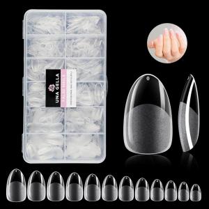 UNA GELLA Extra Short Almond Nail Tips 12 Sizes Short Almond Gel Nail Tips 120Pcs Soft Gel Clear Full Cover Nails Tips Acrylic False Nails Press On Nails for Extensions DIY Salon(A-Short Oval)
