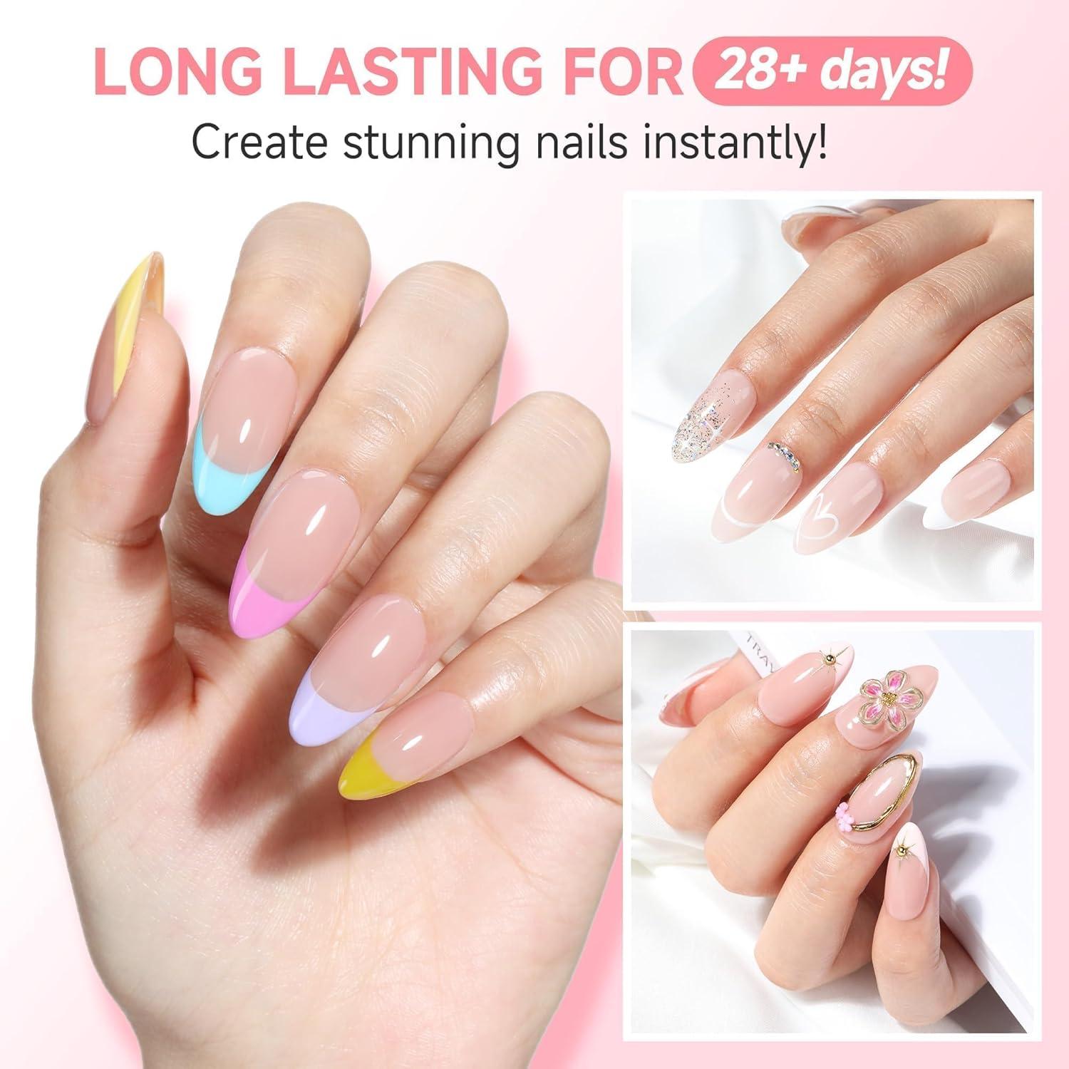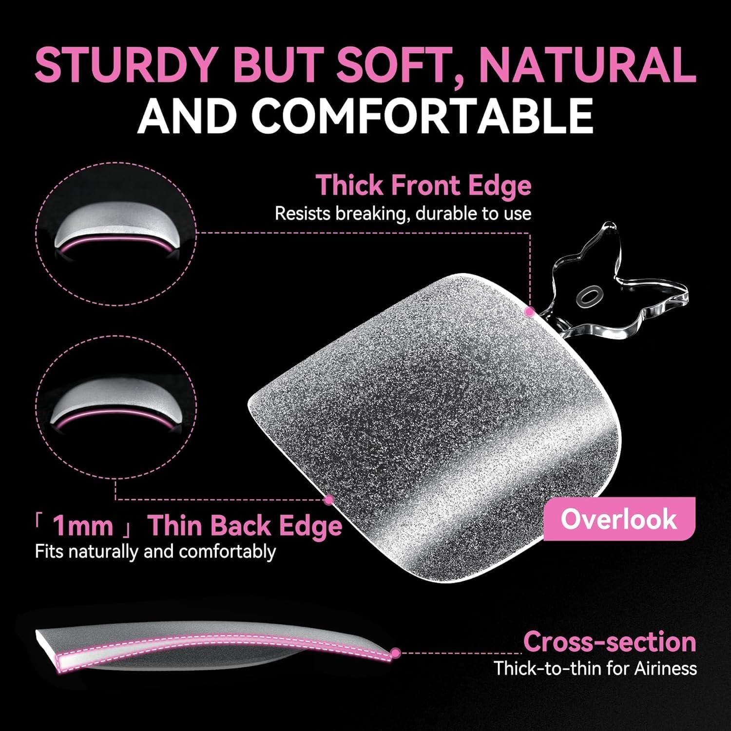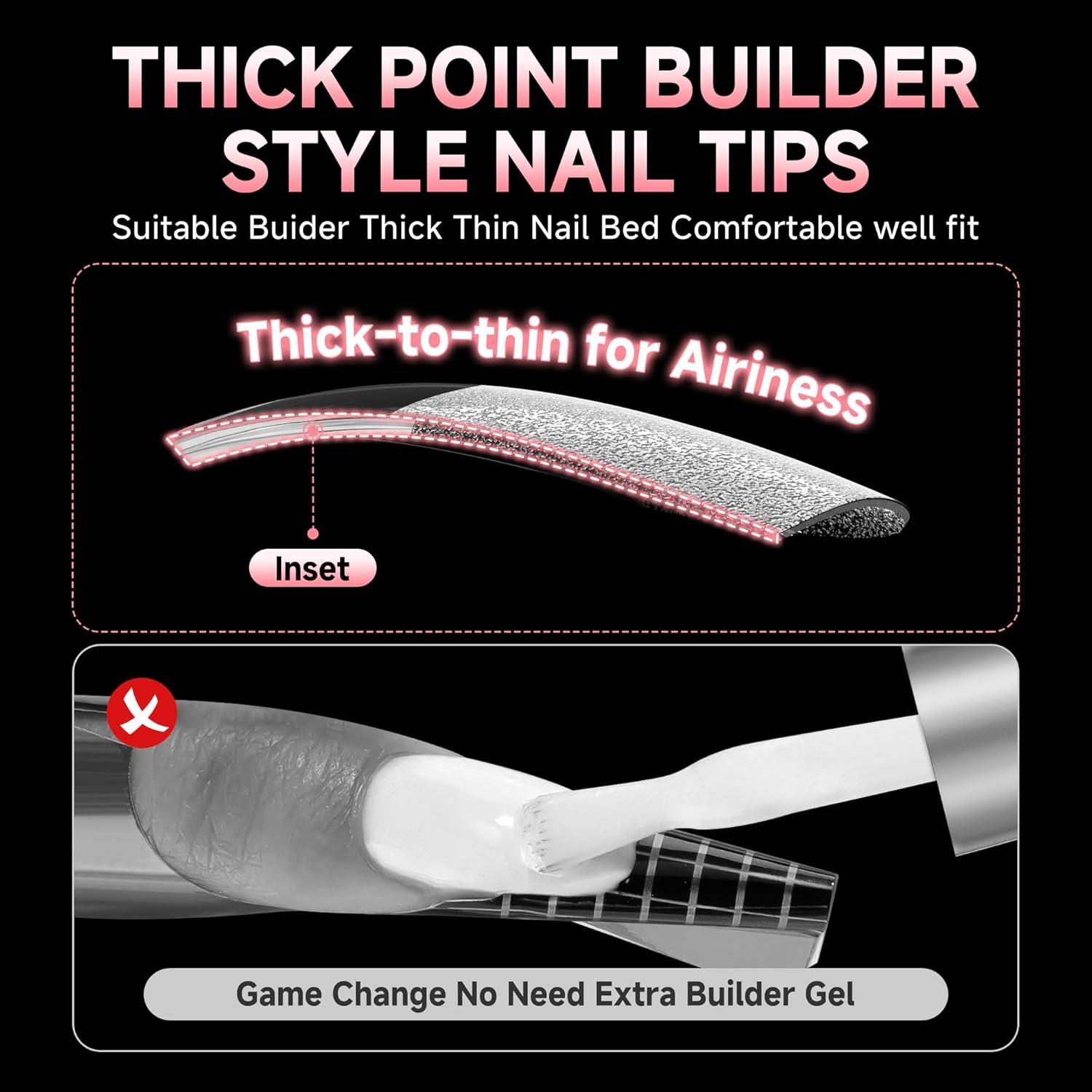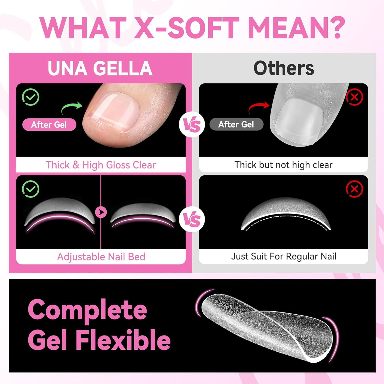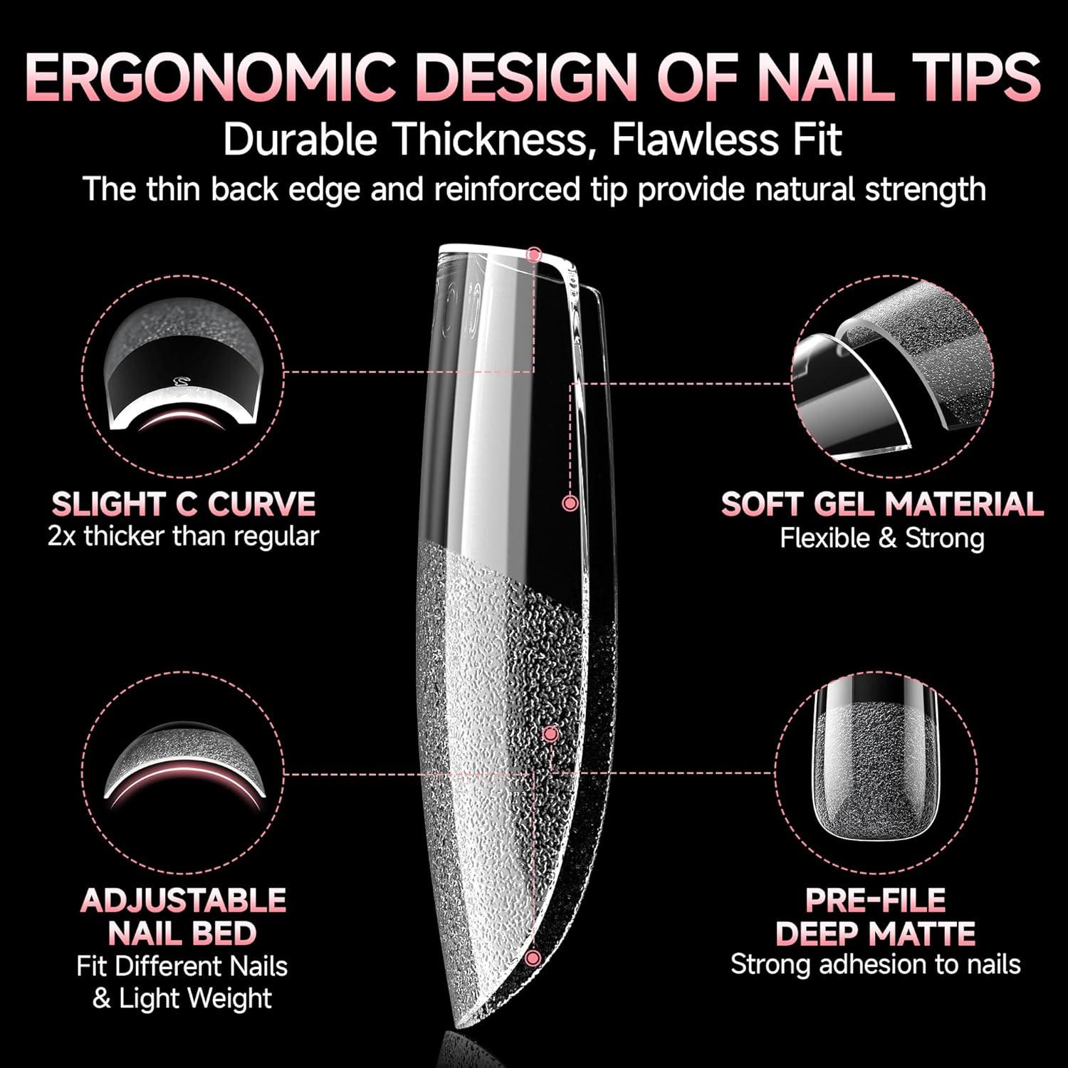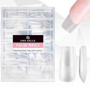 UNA GELLA Square Nail Tips X-Soft Thicker Flexible Gel Nails 330PCS Pre-etched Square Nail Tips Press on Full Cover Acrylic Fake Nails Strength Clear Nails for Nail Extensions DIY Salon 15 Sizes(Medium Almond)
