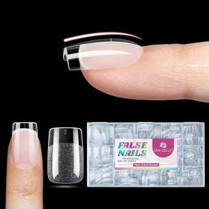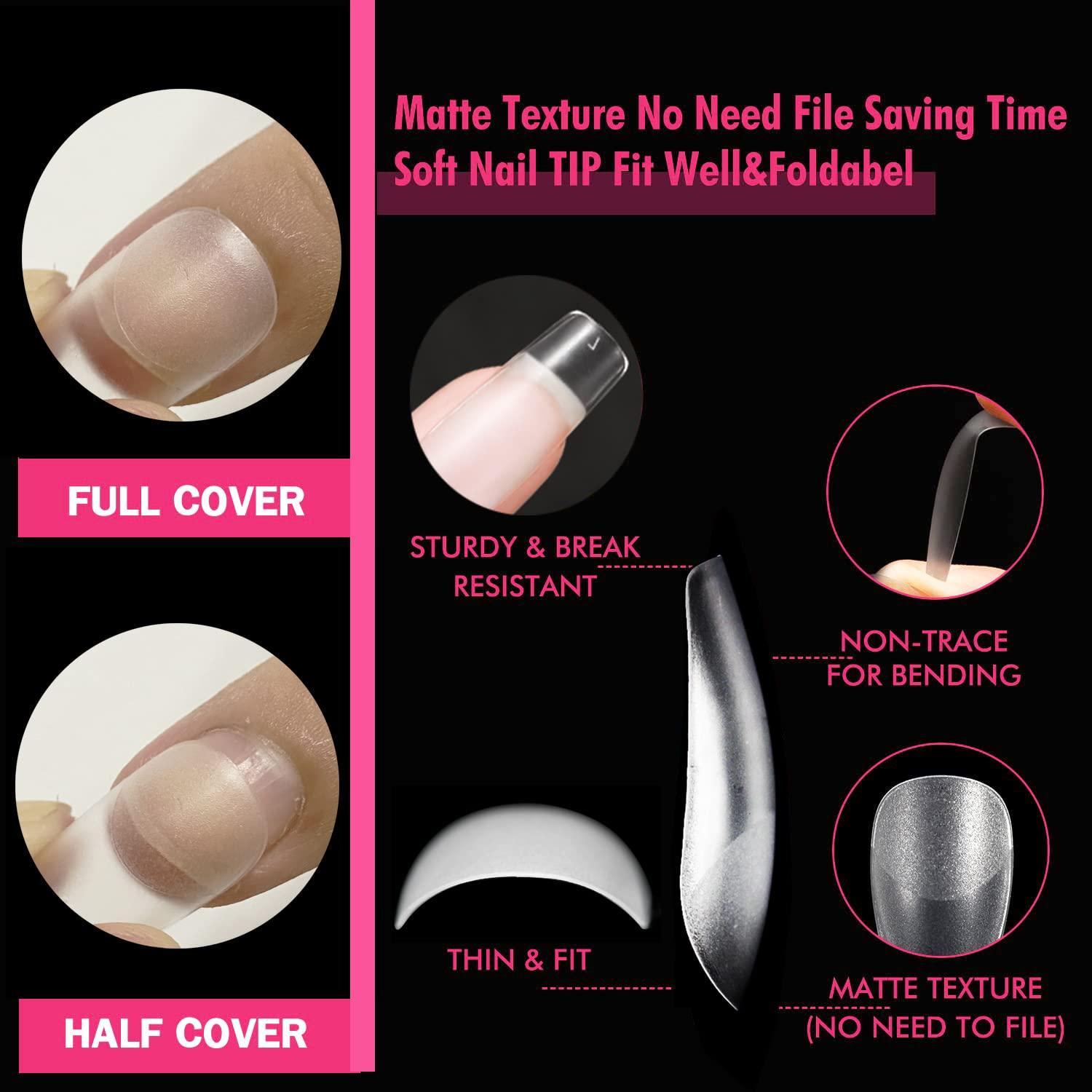 UNA GELLA Square Nail Tips X-Soft Thicker Flexible Gel Nails 330PCS Pre-etched Square Nail Tips Press on Full Cover Acrylic Fake Nails Strength Clear Nails for Nail Extensions DIY Salon 15 Sizes(Medium Square)