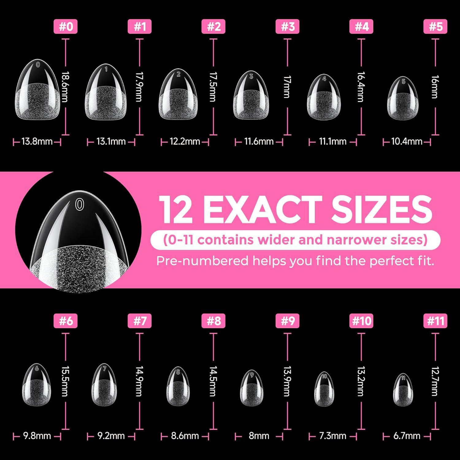 UNA GELLA 9 in 1 Gel Nail Glue for Clear Acrylic Nails Tips 2Pcs 10ml Long Lasting Super Strong Brush on Nail Gel Glue for False Press on Nails Tips Base Blooming Gel, U V Light Required(Extra Short Almond Nail Tips 216pcs)