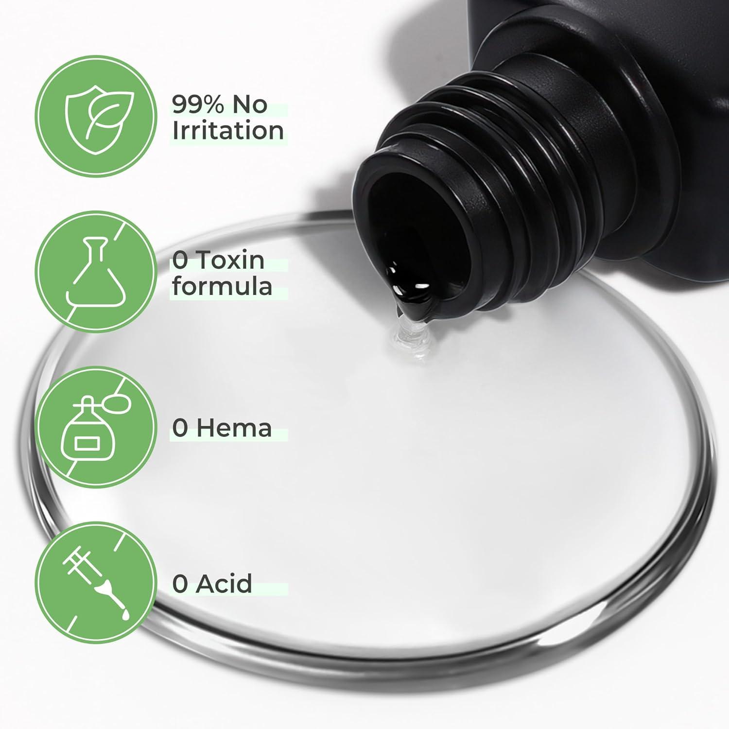 🌿【Healthy Formula】Upgraded gentle formula with low odor, safe for natural nails. This glue for nails requires u v lamp curing and provides a crystal-clear finish that won’t yellow or bubble. Easy to soak off without damage, giving you a pleasant nail experience!