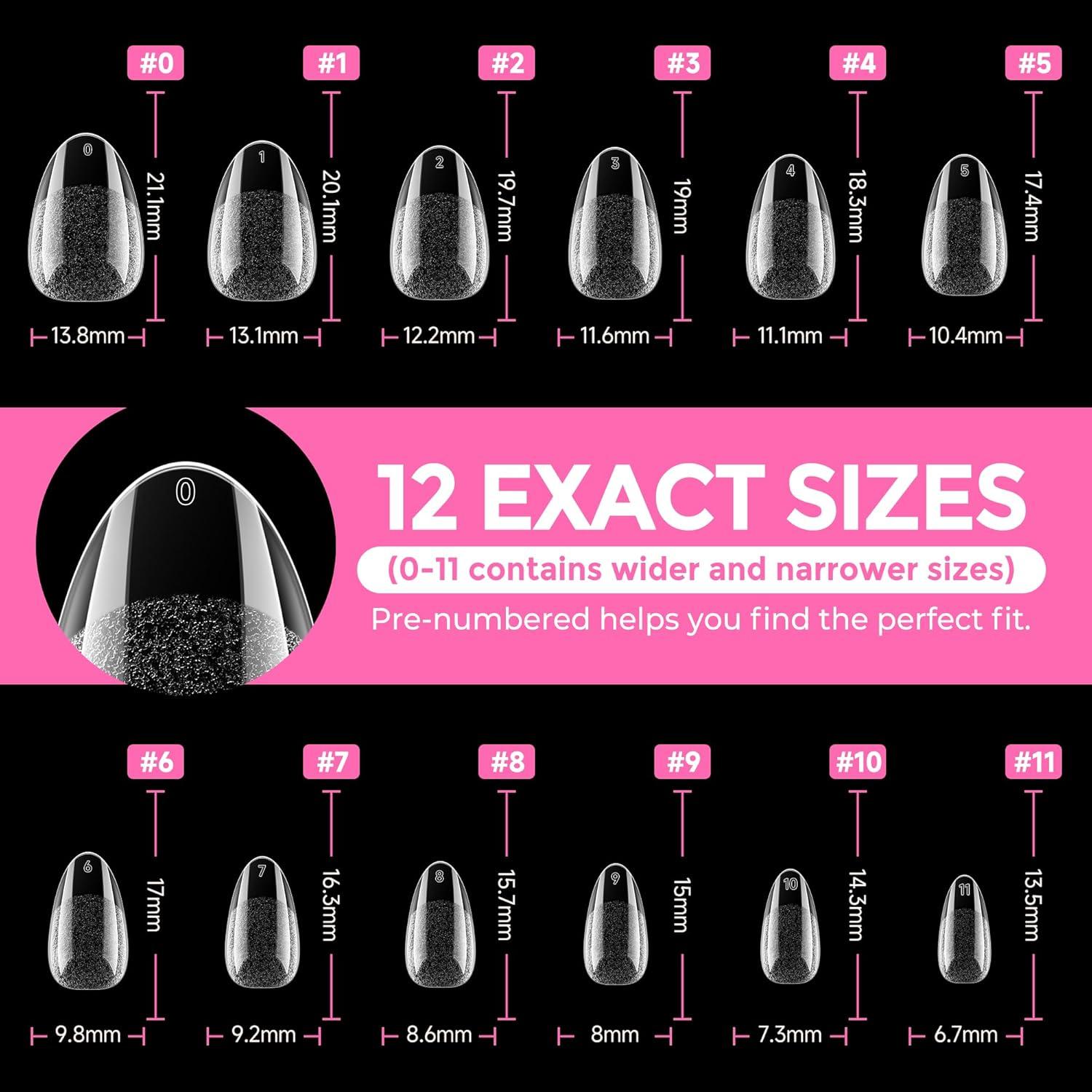 UNA GELLA 9 in 1 Gel Nail Glue for Clear Acrylic Nails Tips 2Pcs 10ml Long Lasting Super Strong Brush on Nail Gel Glue for False Press on Nails Tips Base Blooming Gel, U V Light Required(Short Almond Round Nail Tips 216pcs)