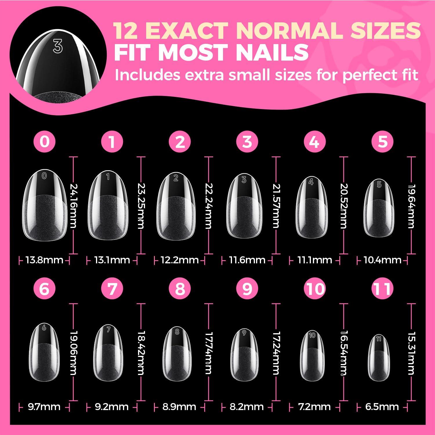 ❤12 Sizes Tips Fit Your Nails: Out clear almond tips contain 12 sizes with size number on the top of the tips can easy pick proper tips for your nail. And 2 extra size can suit bigger or smaller nails, in case 10size can not fit few of your nails.
