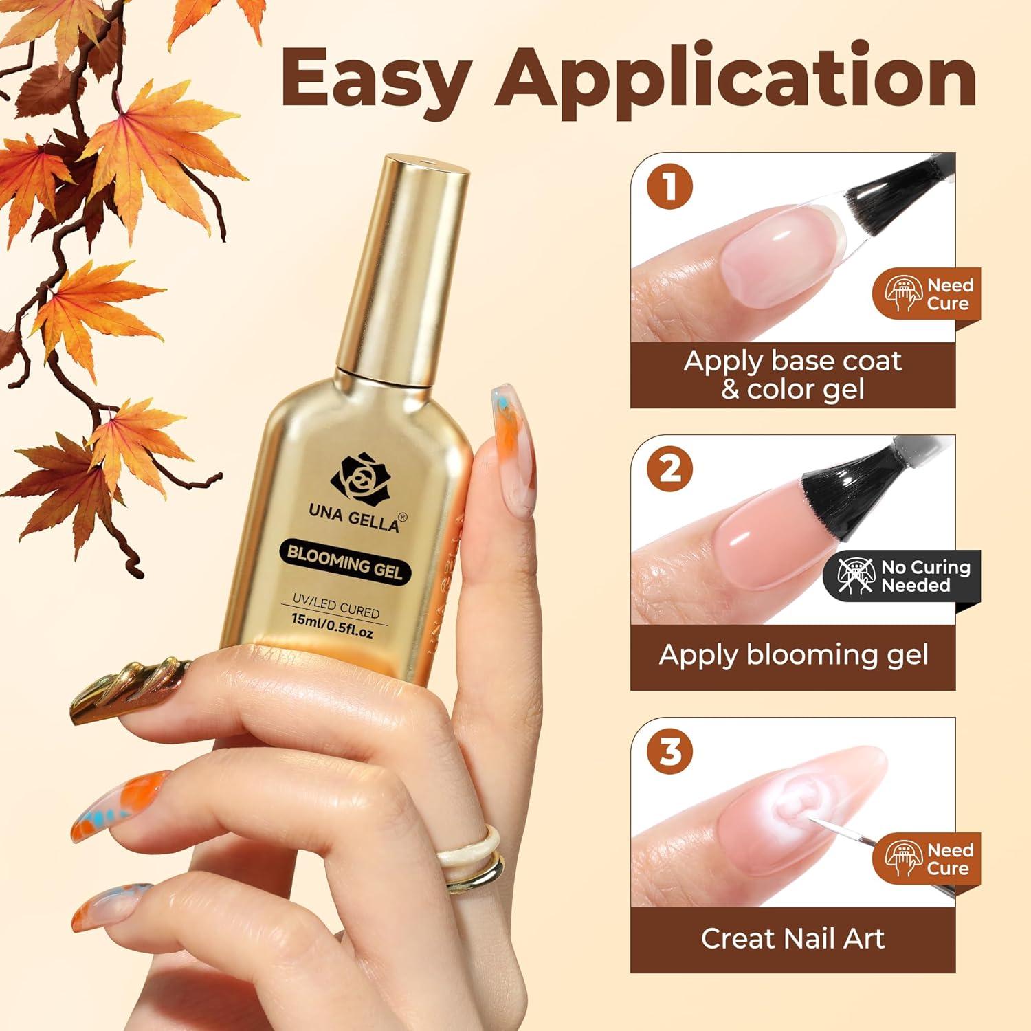 ❤ Magical Blooming Nail Art: Includes 1 bottle of UNA GELLA Blooming Gel (15ml). With our super clear blooming gel nail polish, you can easily create stunning marble, gemstone, watercolor, floral, tie-dye, or gradient designs. Achieve salon quality nail art at home in just minutes and give your nails a fresh, stylish look