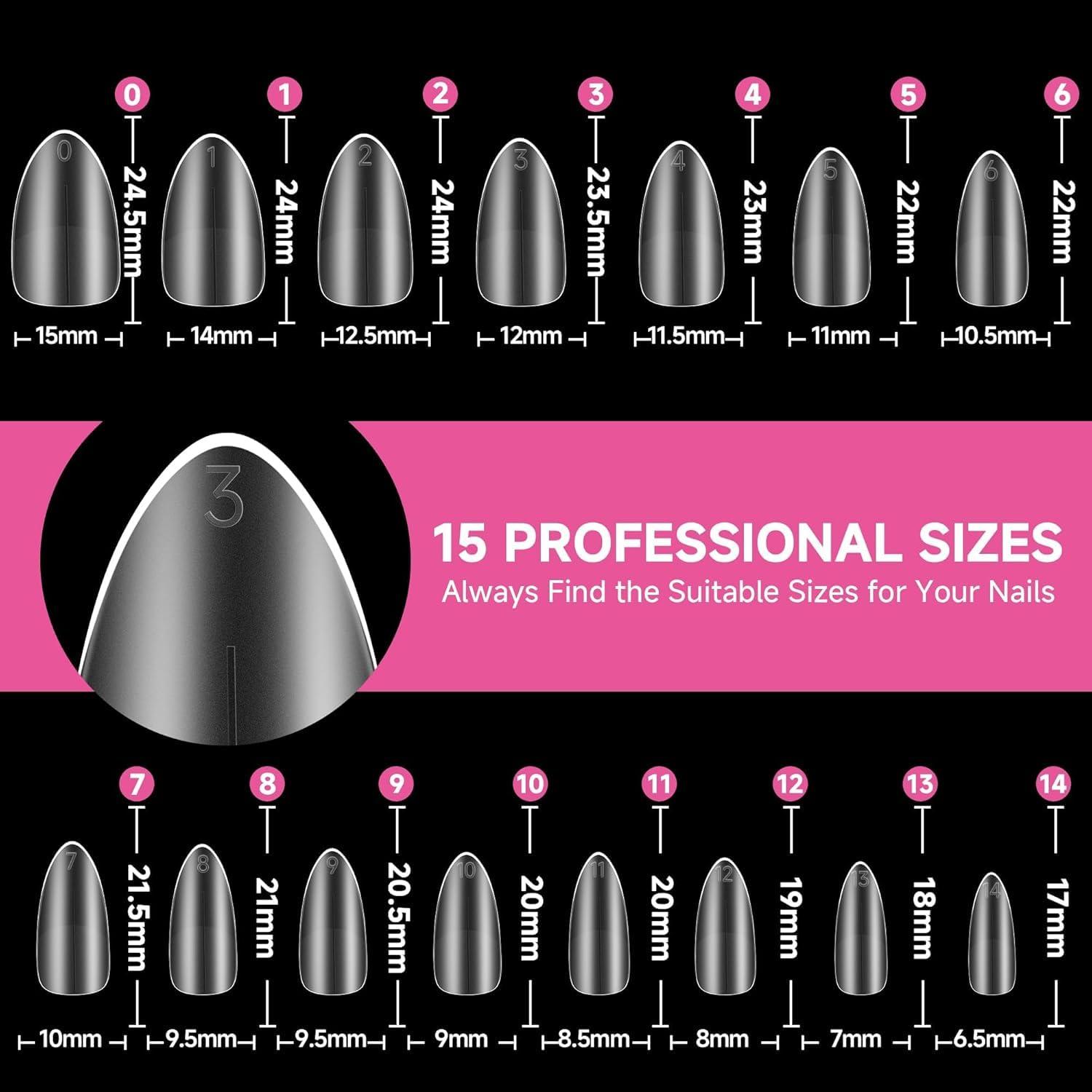 🌠15 Sizes of Tips: The clear short coffin tips come in 15 sizes, totaling 312 tips. Additionally, there are 3 extra sizes to accommodate various hand types and nail shapes. Each nail tips is labeled with a size number, facilitating quick selection and reducing selection time.