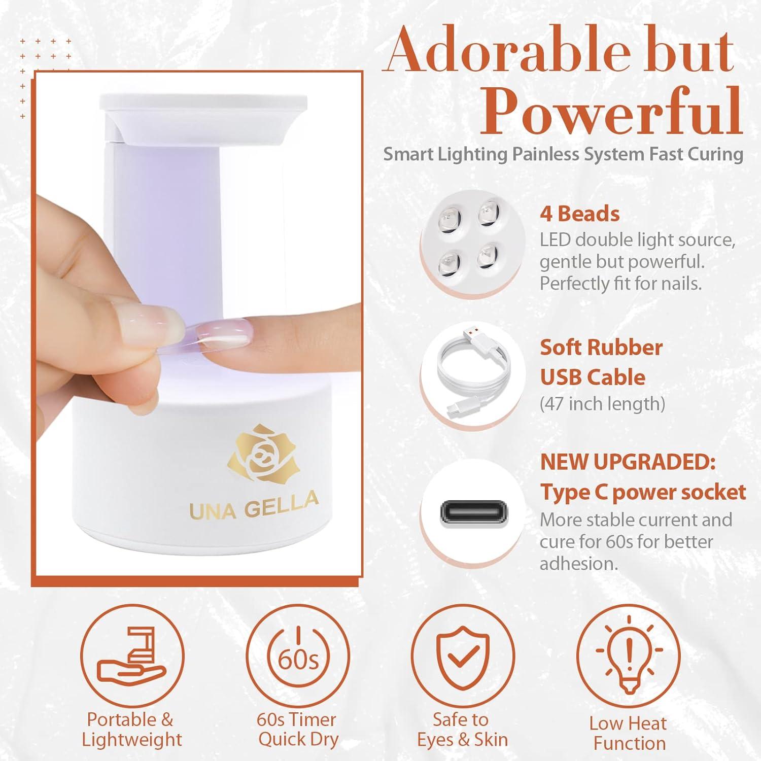 UNA GELLA Mini U V LED Light for Nails, Innovative Nail Lamp with Open Space for Easy Gel Tips Nail Extension, Quick-Dry U V Nail Light, Portable Nail Dryer for Nail Gel Travel or Home Nail Art