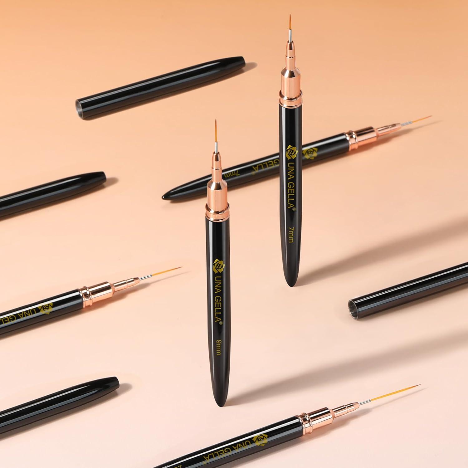 UNA GELLA Nail Art Brushes Metallic, Liner Pens 5Pcs Set For Nail Art Gel Polish, Gray Color, Detail Nail Art Design Painting Brush Set For Nails Gel Fine Drawing Nail Tools, 6/9/11/15/18mm Sizes(Black)