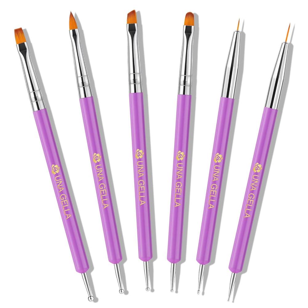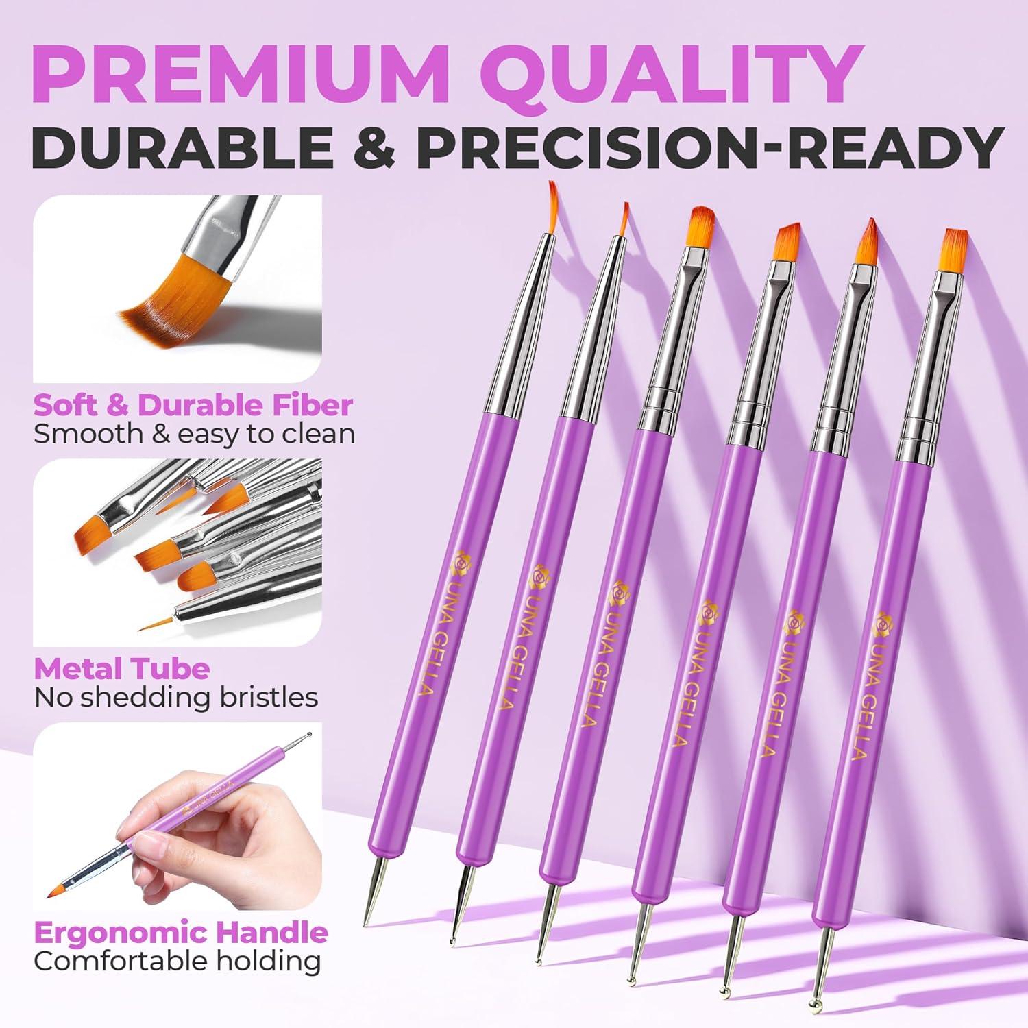 UNA GELLA Nail Art Brushes Set 6PCS Black Color Double-ended Acrylic Nail Design Brush Set Nail Dotting Tools Nail Art Gel Polish Liner Brushes for Gel Polish Painting DIY Nail Salon(Purple)