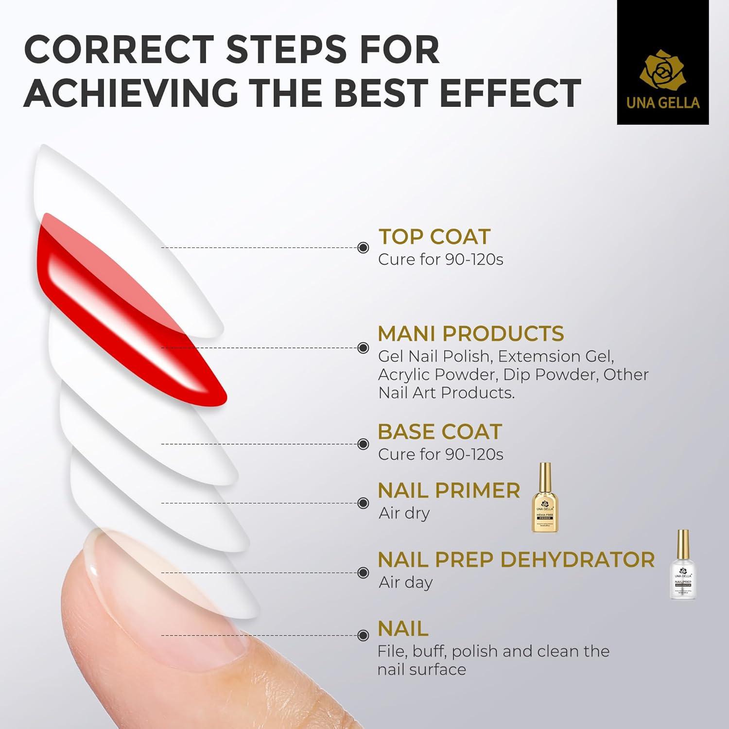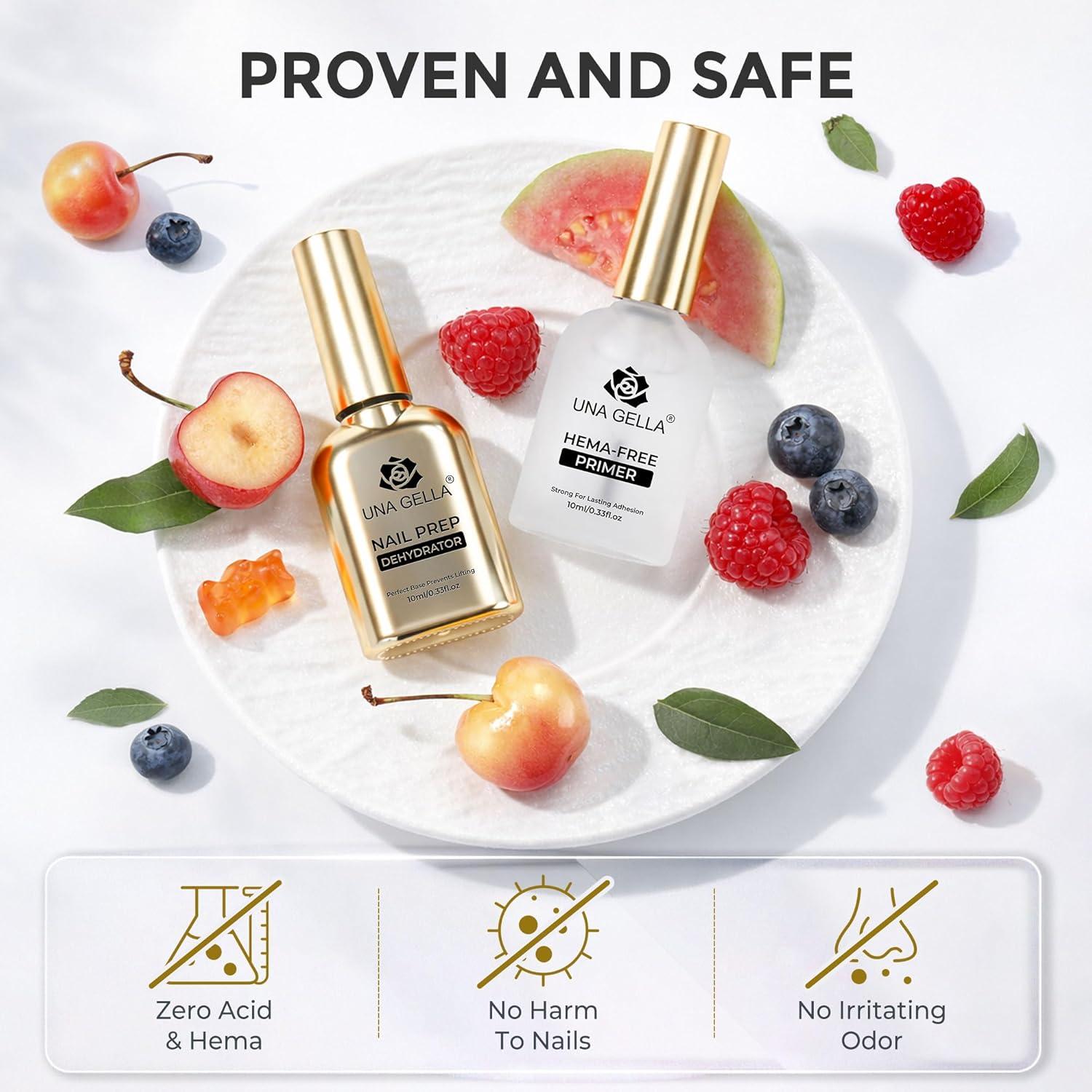 UNA GELLA Nail Prep Dehydrator & Acid-Free Primer Set – Professional Non-Acid Nail Primer for Acrylic, Gel, Dip Powder, Prevents Lifting, Long-Lasting Manicure up to 30 Days, 0.5oz Salon & DIY Kit