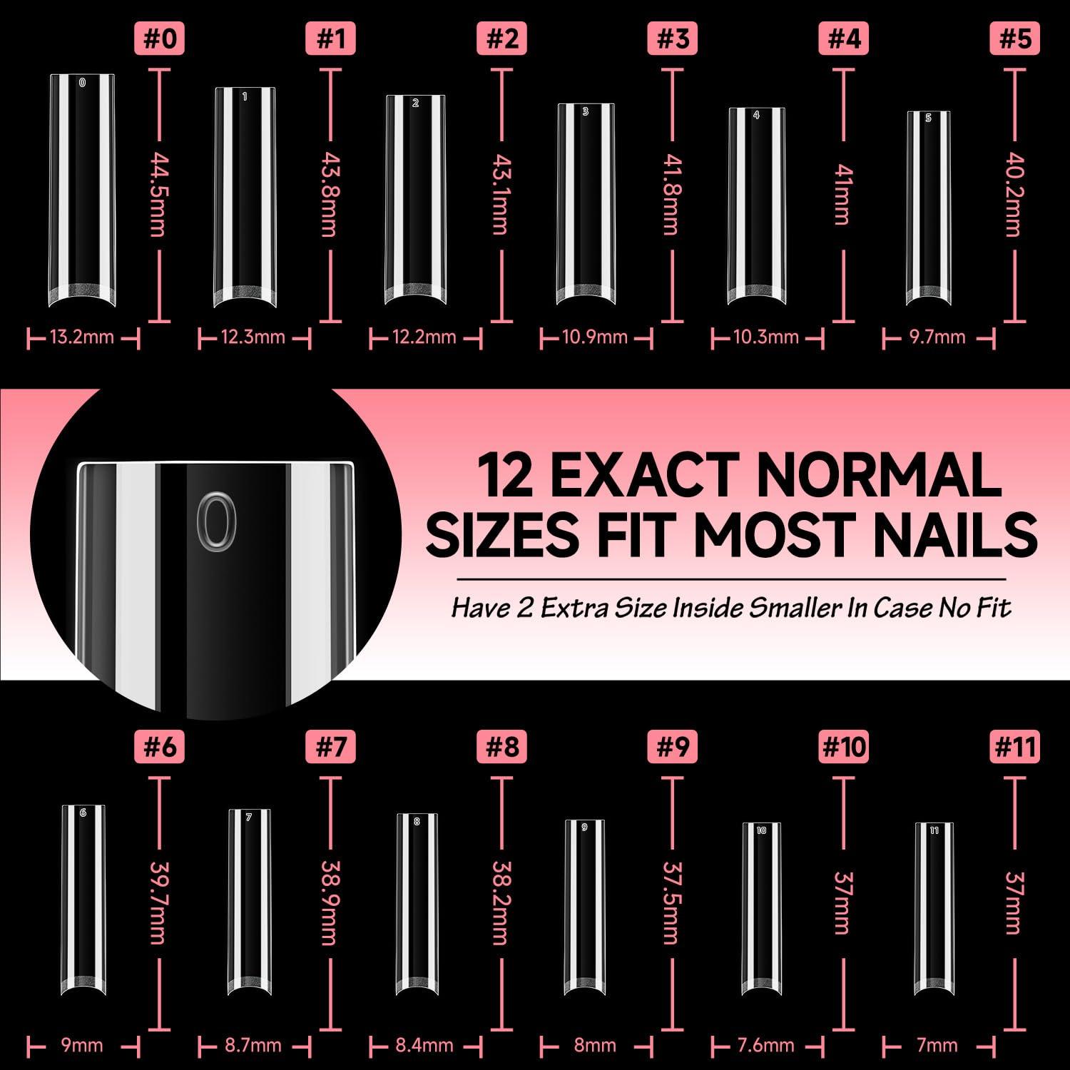 ✨【12 Sizes for Universal Fit】Designed with 12 carefully curated sizes (504 pieces total), these square tips comfortably fit most nail beds, whether you have petite or wide nails. Designed in an extra-long square shape, these gel tips offer endless styling possibilities for nail enthusiasts and professionals.