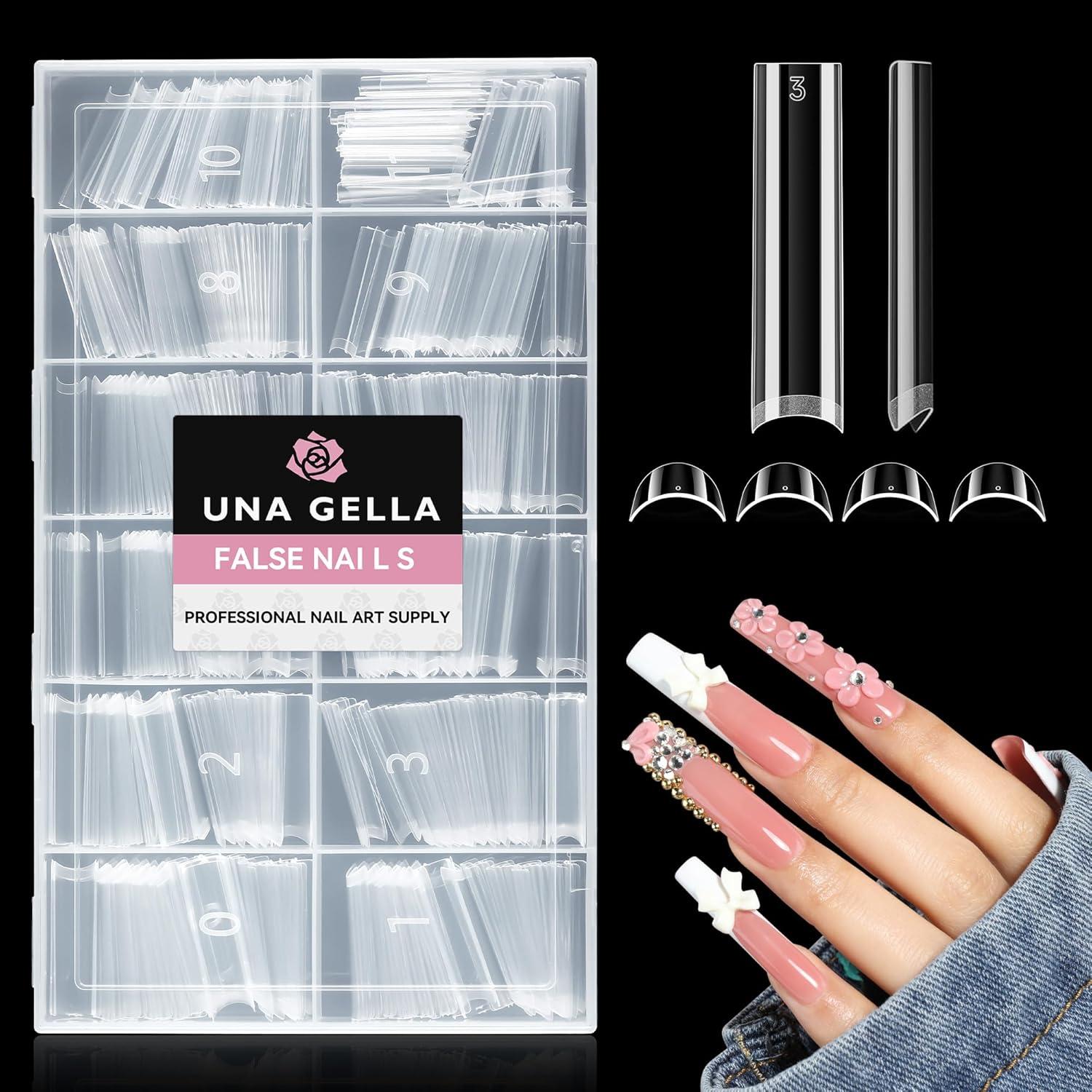 UNA GELLA Nail Tips Sqaure Extra Long Tapered Sqaure Nail Tips 504pcs XXL Clear Fake Nails Full Cover Square Gel Tips for Acrylic Nails Tips for Press on Nail Extensions Home DIY Salon 12 Sizes(Half Straight)