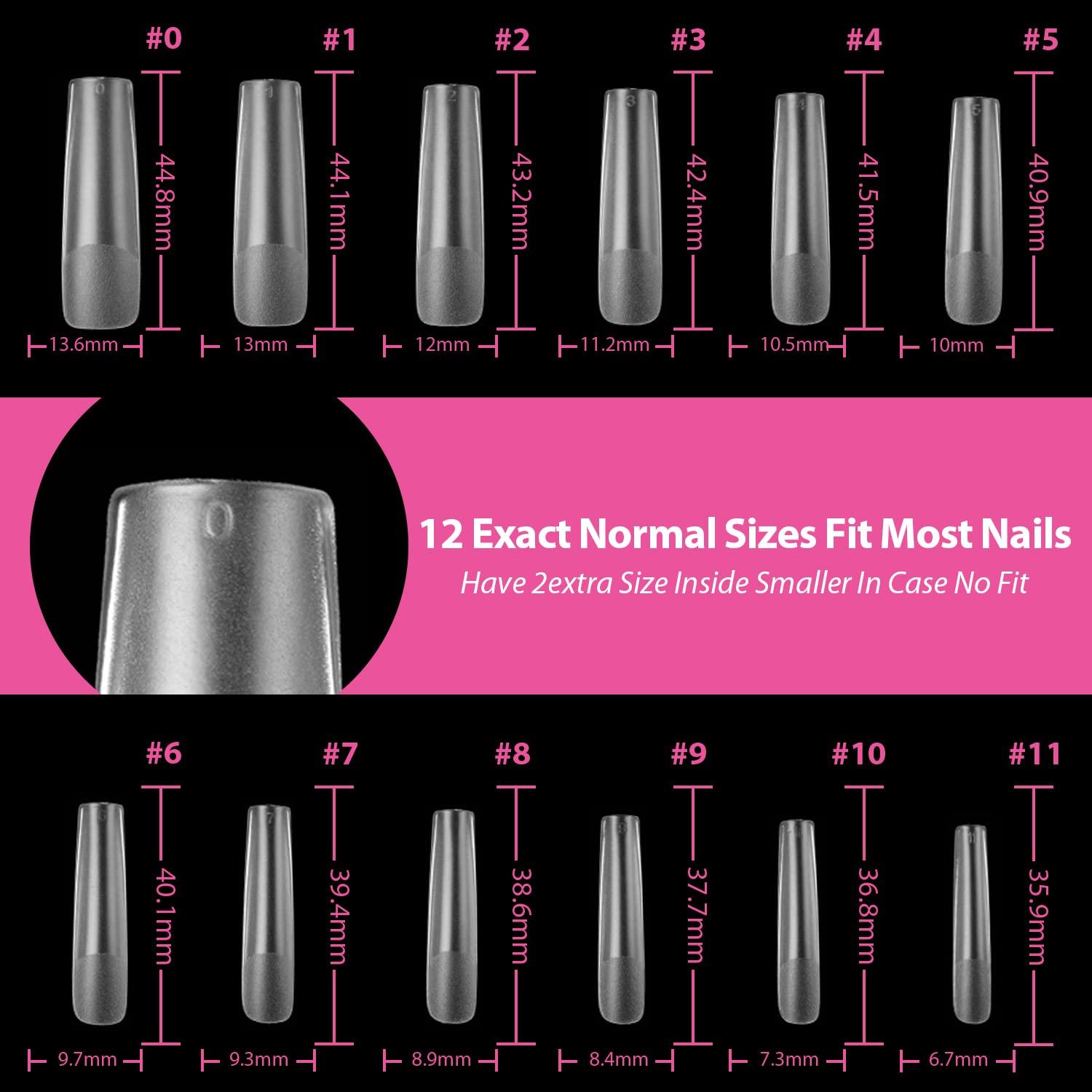 ❤️12 Sizes Nail Tips : XXL 120pcs acrylic nail tips Square Straight clear with 12 sizes are suitable for all kinds of nail satisfying various needs. Our french Extra Long C Curve tips made with perfect length and thickness. And 2 extra size can suit bigger or smaller nails, in case 10size can not fit few of your nails.