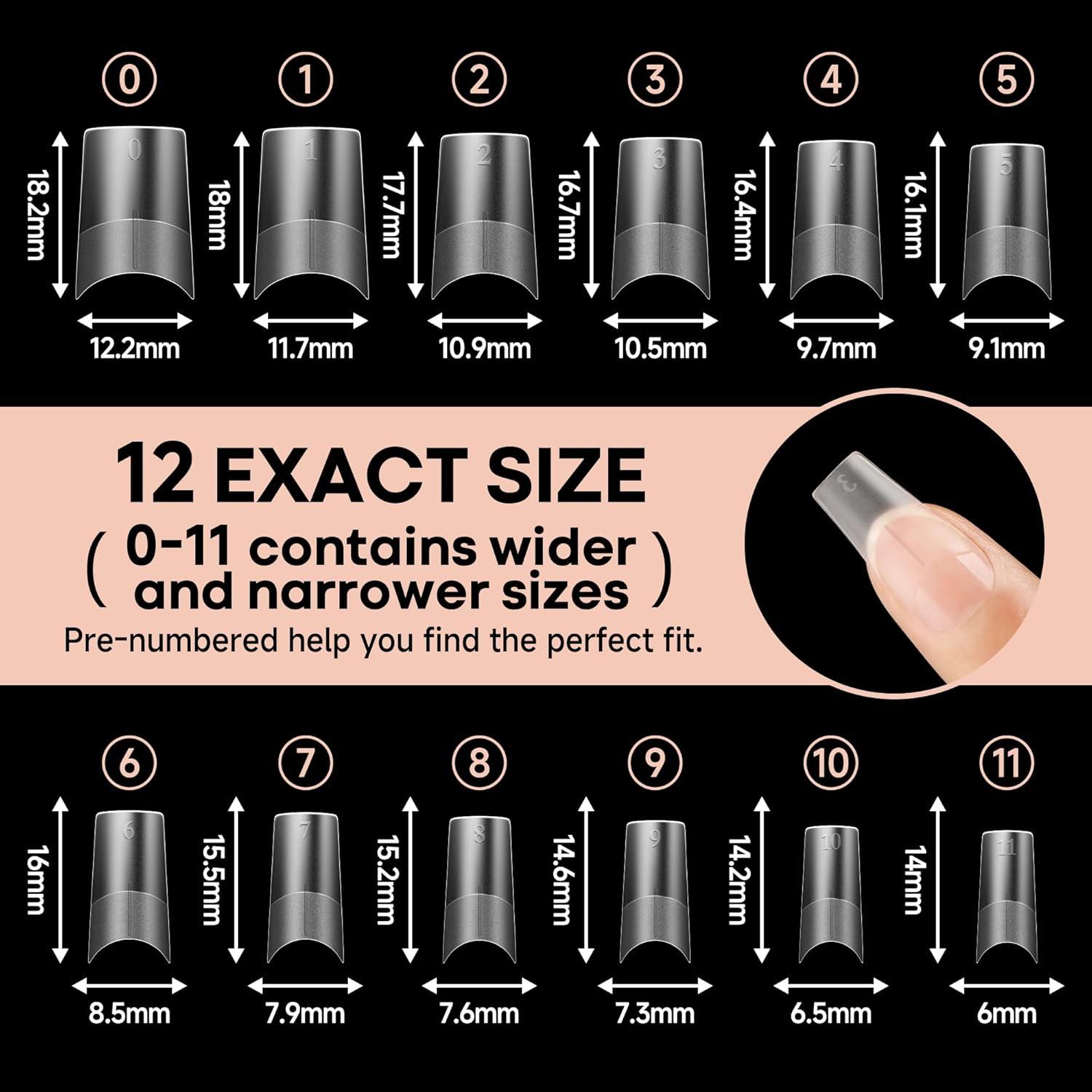 UNA GELLA Short Almond Gel Nail Tips: 504PCS Acylic Nail Tips Almond Shape Extra Short Pre Etched Half Cover 12sizes Salon Quality Soft Press On Nails DIY for Home Nails Extension(D-Medium Square Half)